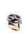 in oro giallo e bianco 9 Kt, sommità piatta con inserto ovale in onice sormontato da file di diamanti taglio 8/8 per totali ct 0,30 ca ed al centro smeraldo taglio ovale di ct 0,80 ca