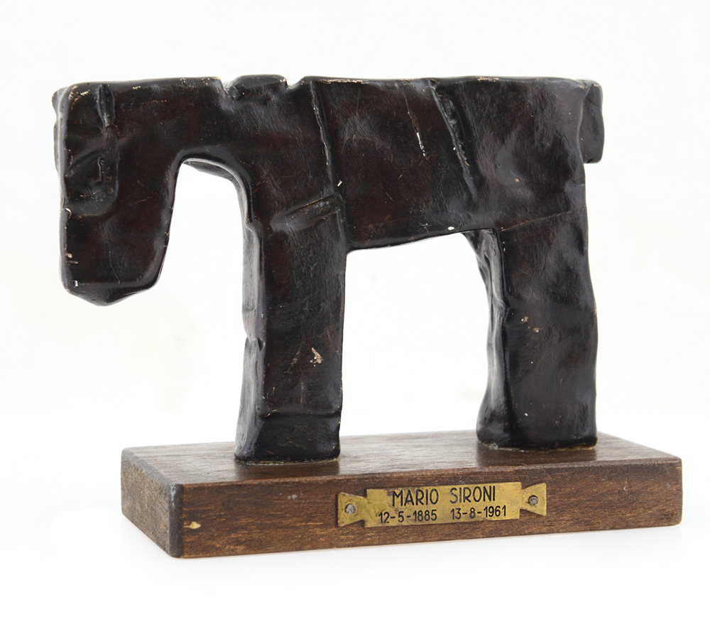 MARIO SIRONI Sassari 12/05/1885 - Milano 05/08/1961 Cavallino, (1950) scultura in gesso colorato e patinato cm. 10,8x15,5x4, opera non firmata, etichetta della Galleria Annunciata (MI) sotto la base, opera registrata al numero 63/10 RA presso l'archivio della Associazione per il Patrocinio e la Promozione della Figura e dell'Opera di Mario Sironi (MI) come da dichiarazione su foto, dichiarazione d'autenticità a cura di Francesco Meloni (che la data 1940 ca.) su foto. Bibliografia: -R.De Grada, "Mario Sironi", Club Amici dell'Arte Editore, Milano, 1972, pagina 158, figura 80. -"Mario Sironi, Sculture-Opere su carta", catalogo della mostra, Roma, Galleria Arco Farnese, 24 maggio - 30 giugno 1985, pagina 27, numero 35 (scheda alla pagina 13).