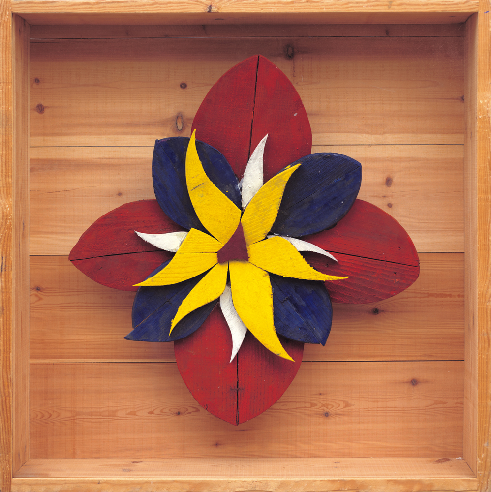 MARIO CEROLI Castelfrentano 1938 Le ninfee, 1996 scultura il legno cm. 66x62x11 entro teca realizzata dall'artista cm. 84,5x84,5x18, firma e anno sul lato di un petalo, dichiarazione d'autenticità dell'artista su foto.