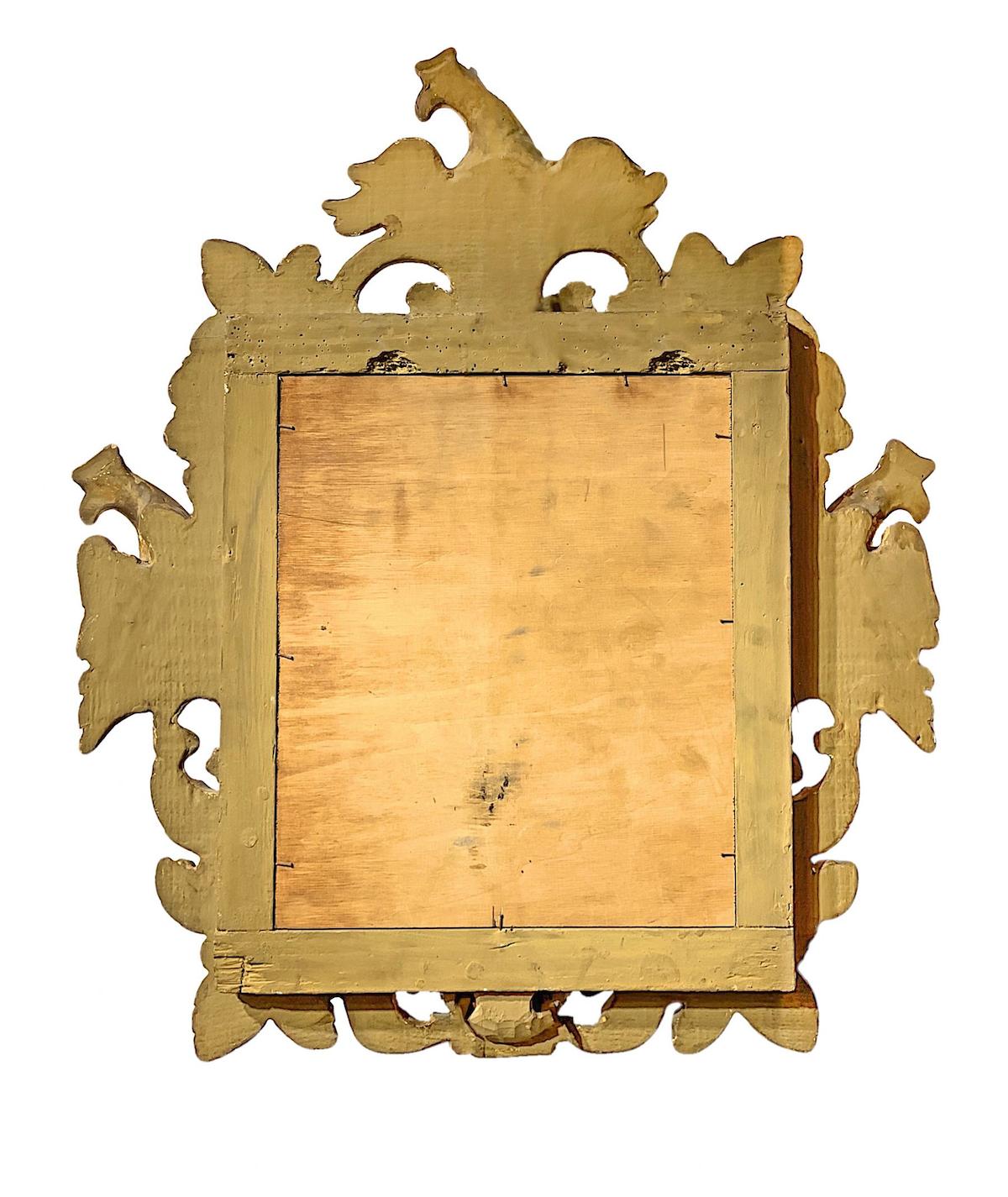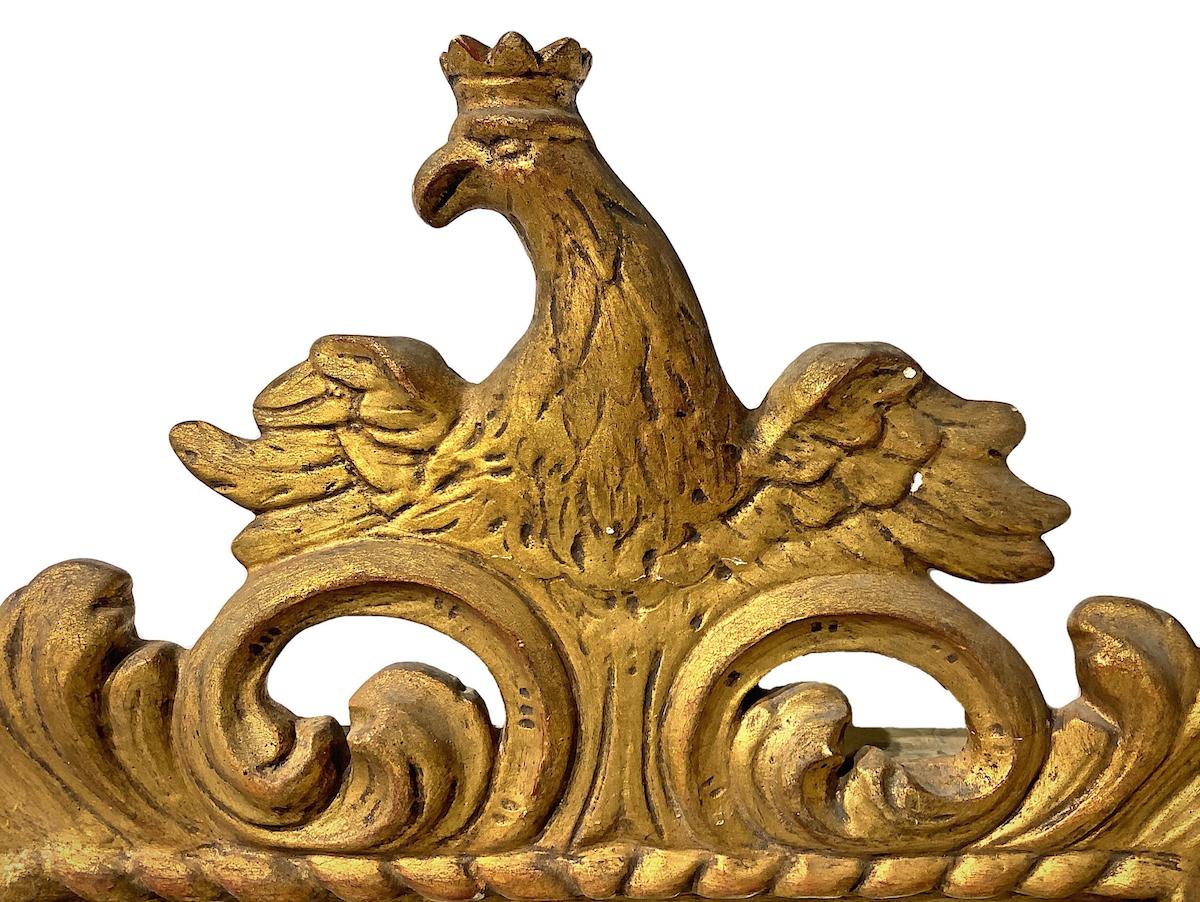Specchiera in legno dorato a due candele, XVIII/XIX secolo. Scolpite ed intagliate con aquile coronate. Specchio coevo. Cm 56x54