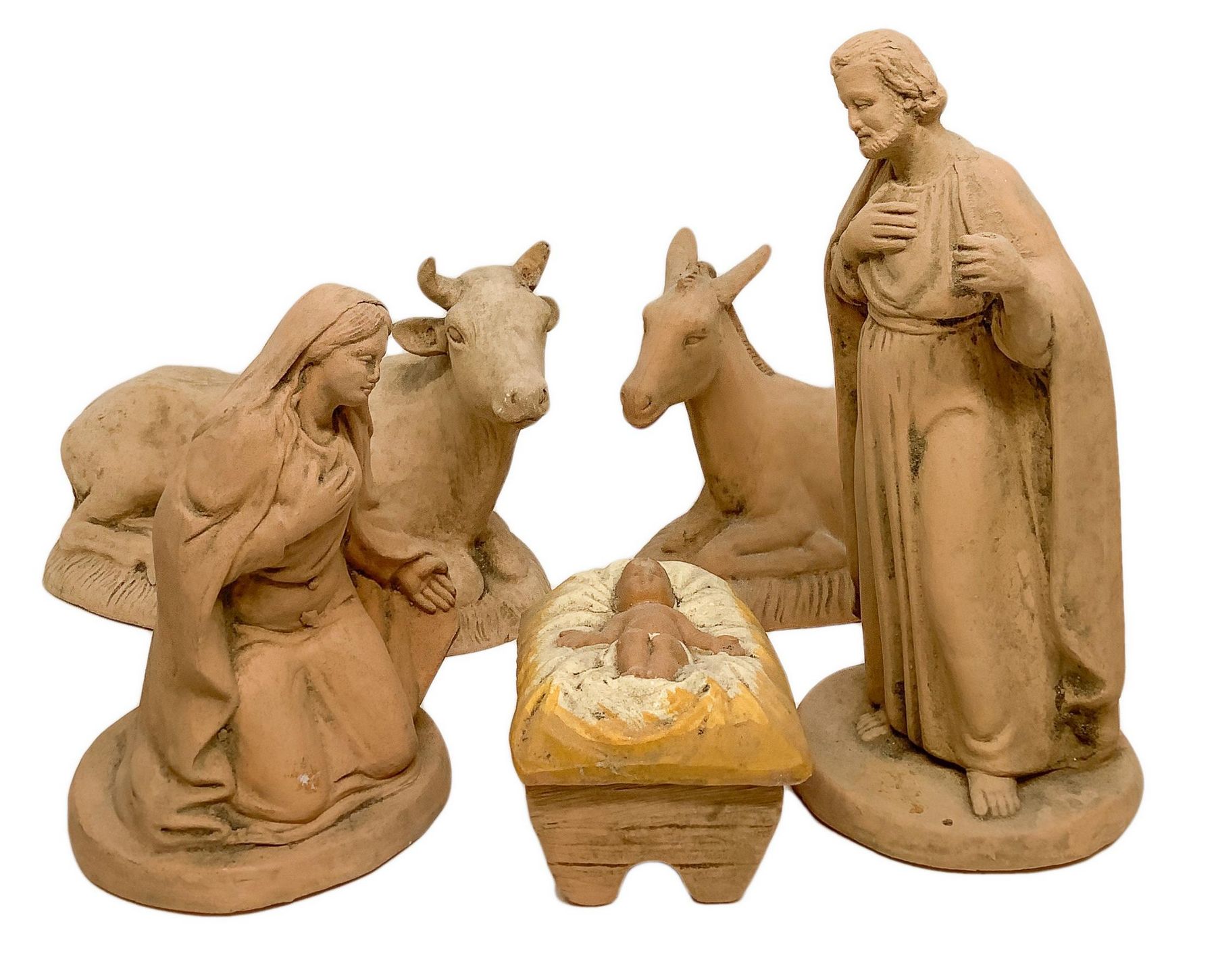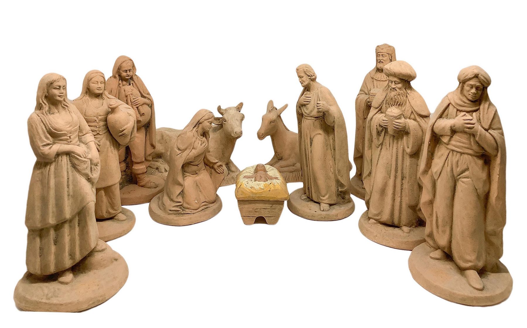 Presepe in terracotta composto da 11 pezzi, inizi XX secolo, Caltagirone