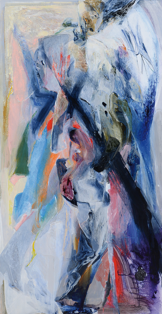 ENNIO CALABRIA Tripoli (Libia) 07/03/1937 Nutus mentis, 2000 olio su tela cm. 160x80, firma, titolo e anno in basso a destra, titolo, firma, anno ed etichetta della Galleria DZ Nuovo Segno al retro, dichiarazione d'autenticità dell'artista e archivio Ennio Calabria a cura di Rita Pedonesi su foto.