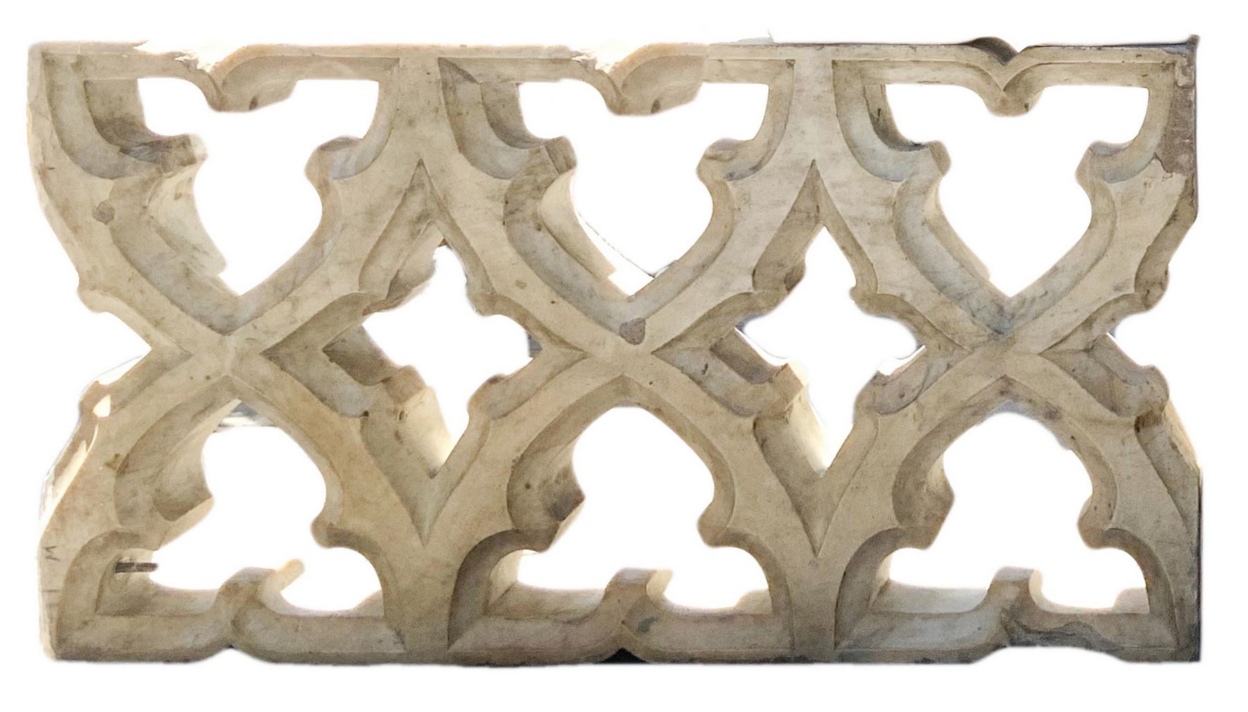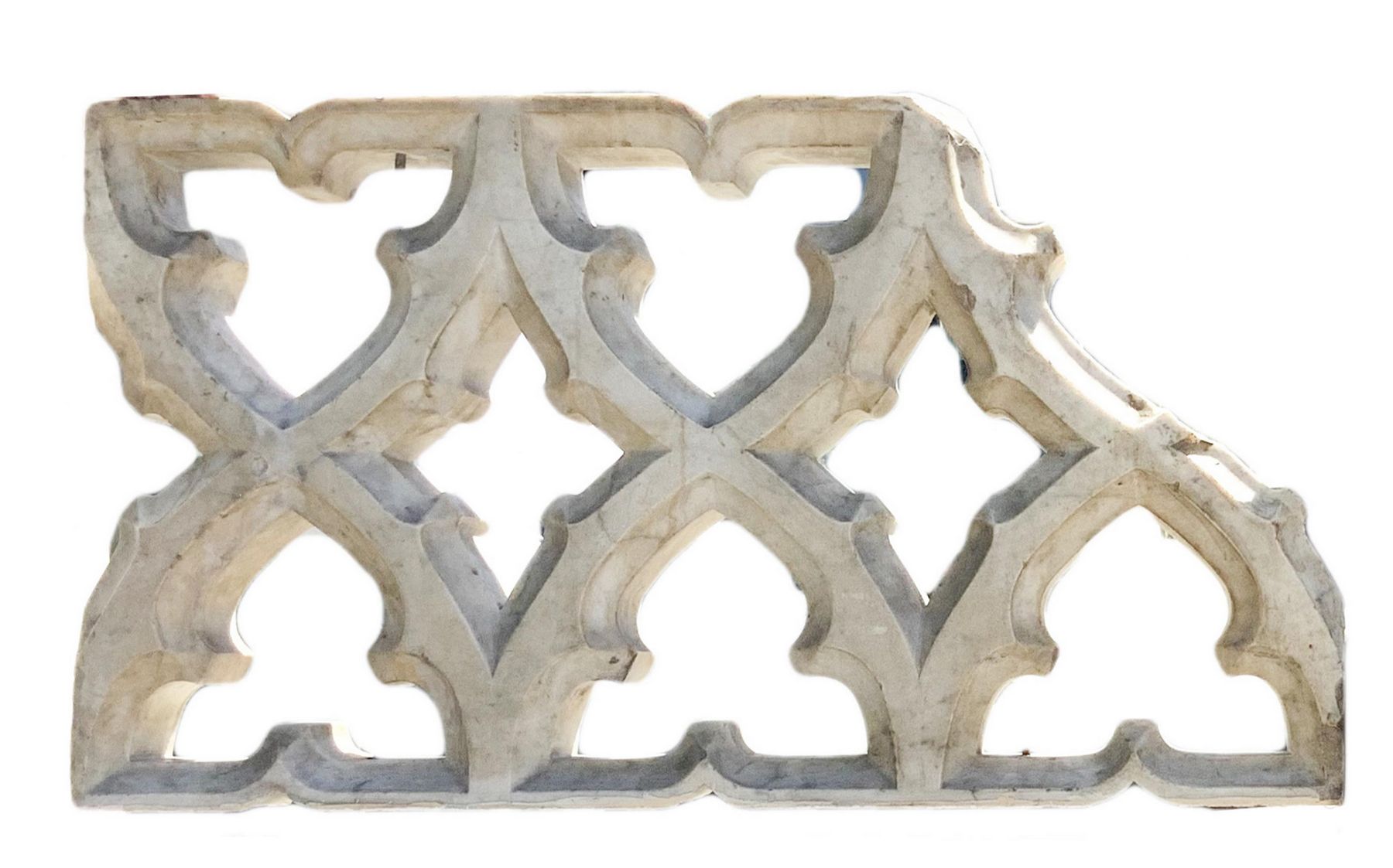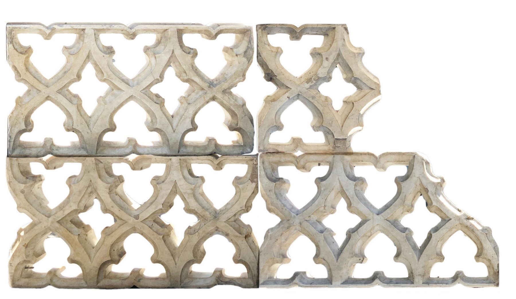 Quattro frammenti in marmo bianco in stile tardo gotico, XVII/XVIII secolo. Componibili. Cm 100x188.