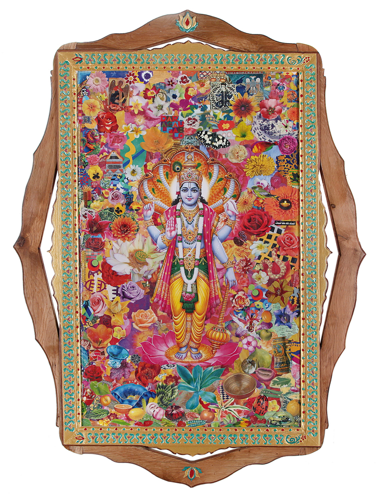 FELIPE CARDENA Balaguer (Spagna) 1979 Voglio godermi la bellezza delle stelle, 2012 collage su tela con cornice dell'artista sagomata cm. 165x120, firma, titolo e anno al retro, dichiarazione d'autenticità dell'artista su stampa fotografica, pubblicato sul catalogo della mostra "Felipe Cardena, poesie della fine del mondo", tenutasi dal 25 maggio al 8 settembre 2012 presso la First Gallery (Roma), pagina 21.