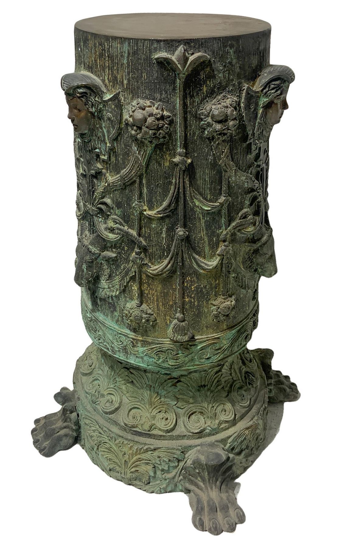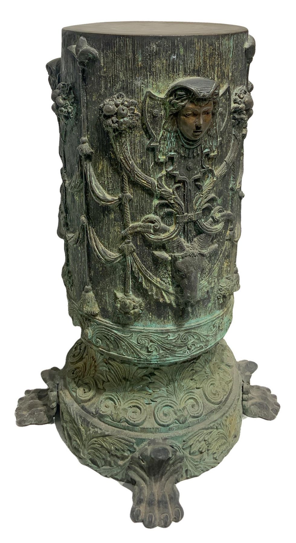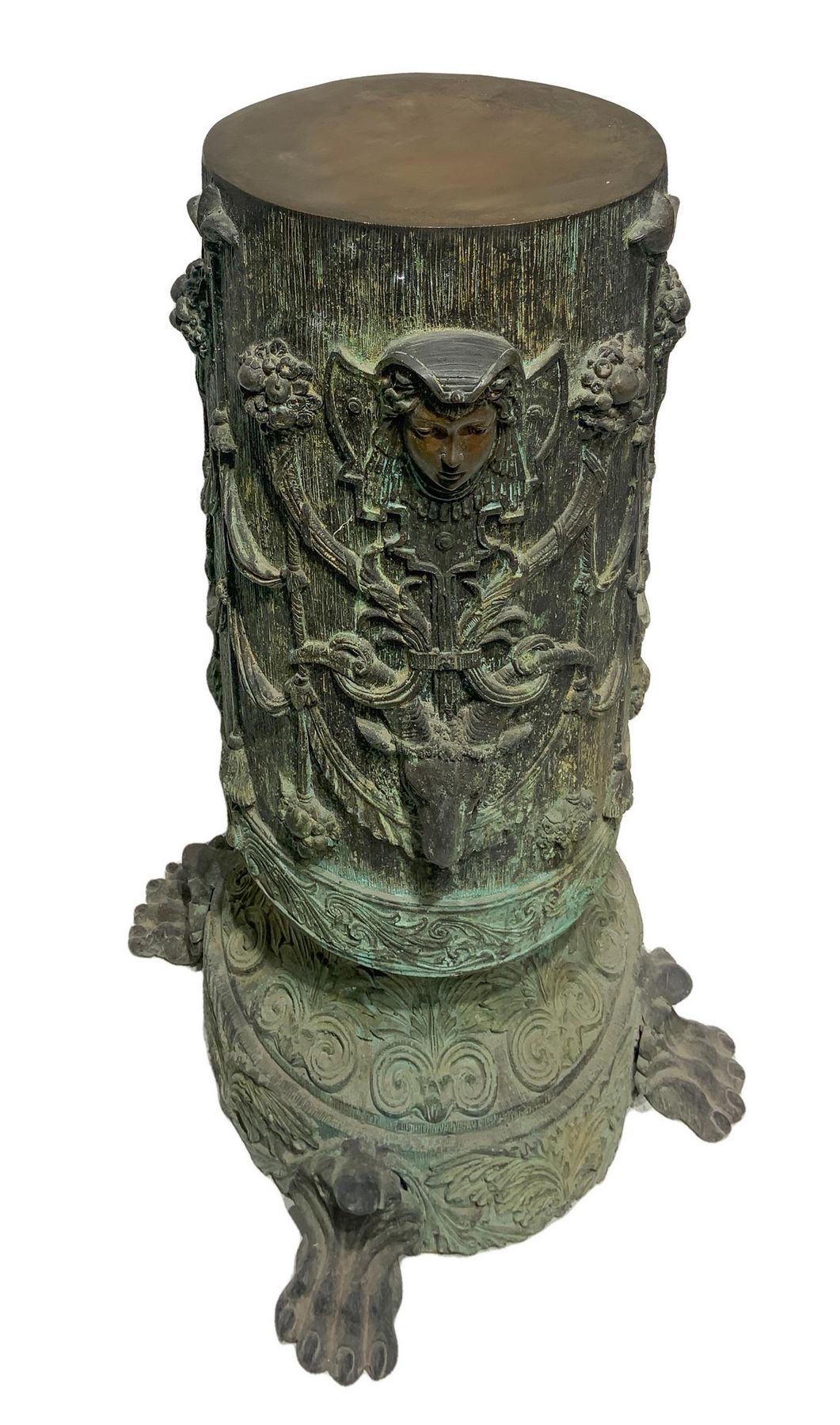 Guéridon in bronzo sbalzato, Jules Mêne (Francia 1810 - 1879). H cm 72. Base con piedi leonini cm 50. Firma sul piano P.J. Mene. Pierre.