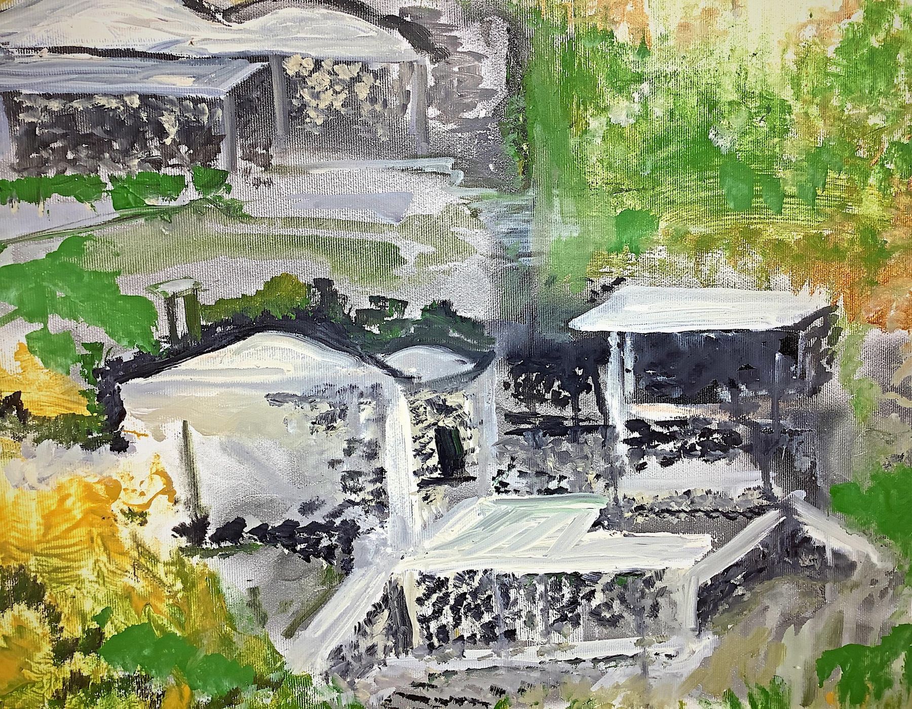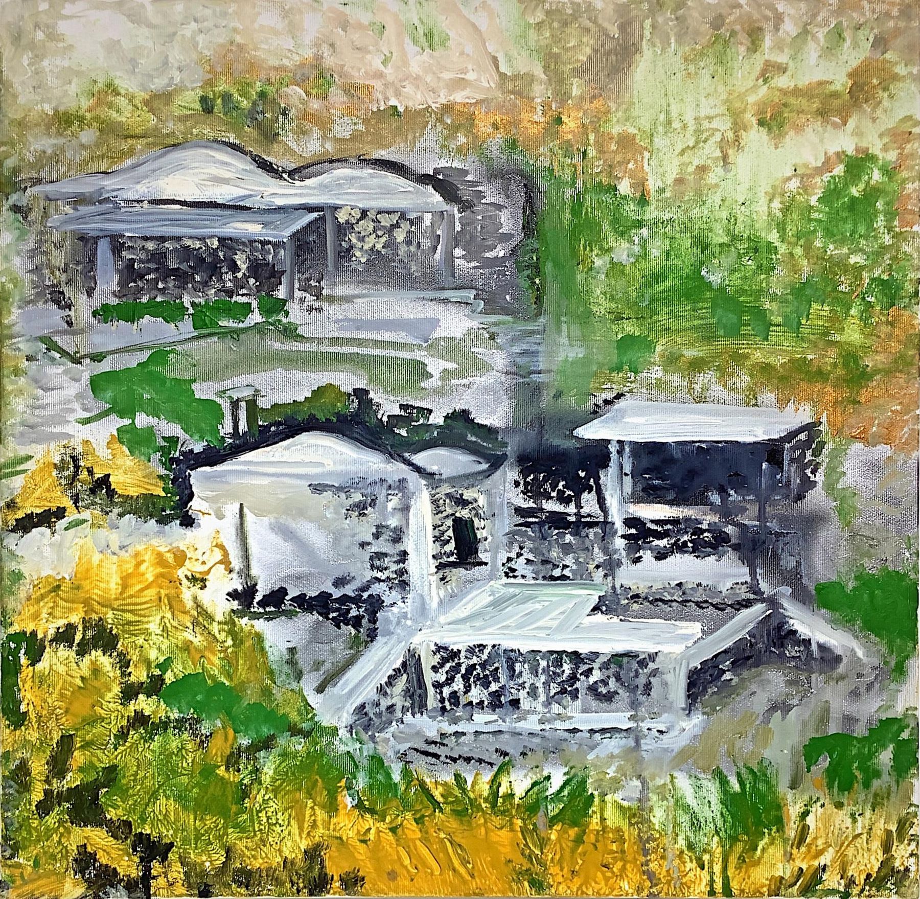 Dipinto ad acrilico su tela raffigurante i “Dammusi” di...