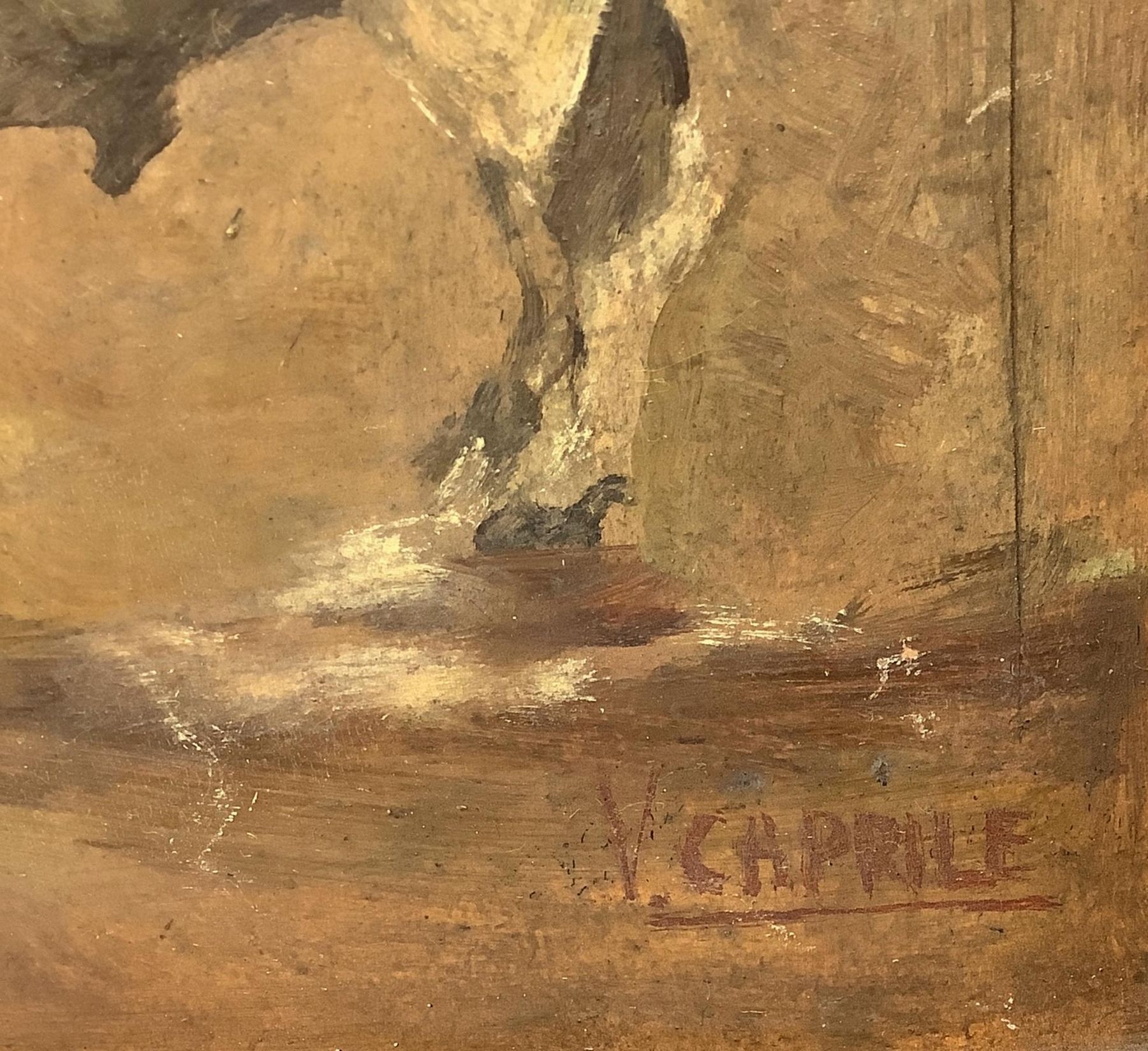 Dipinto ad olio su cartone raffigurante toro. Vincenzo Caprile (Napoli, 1856-...