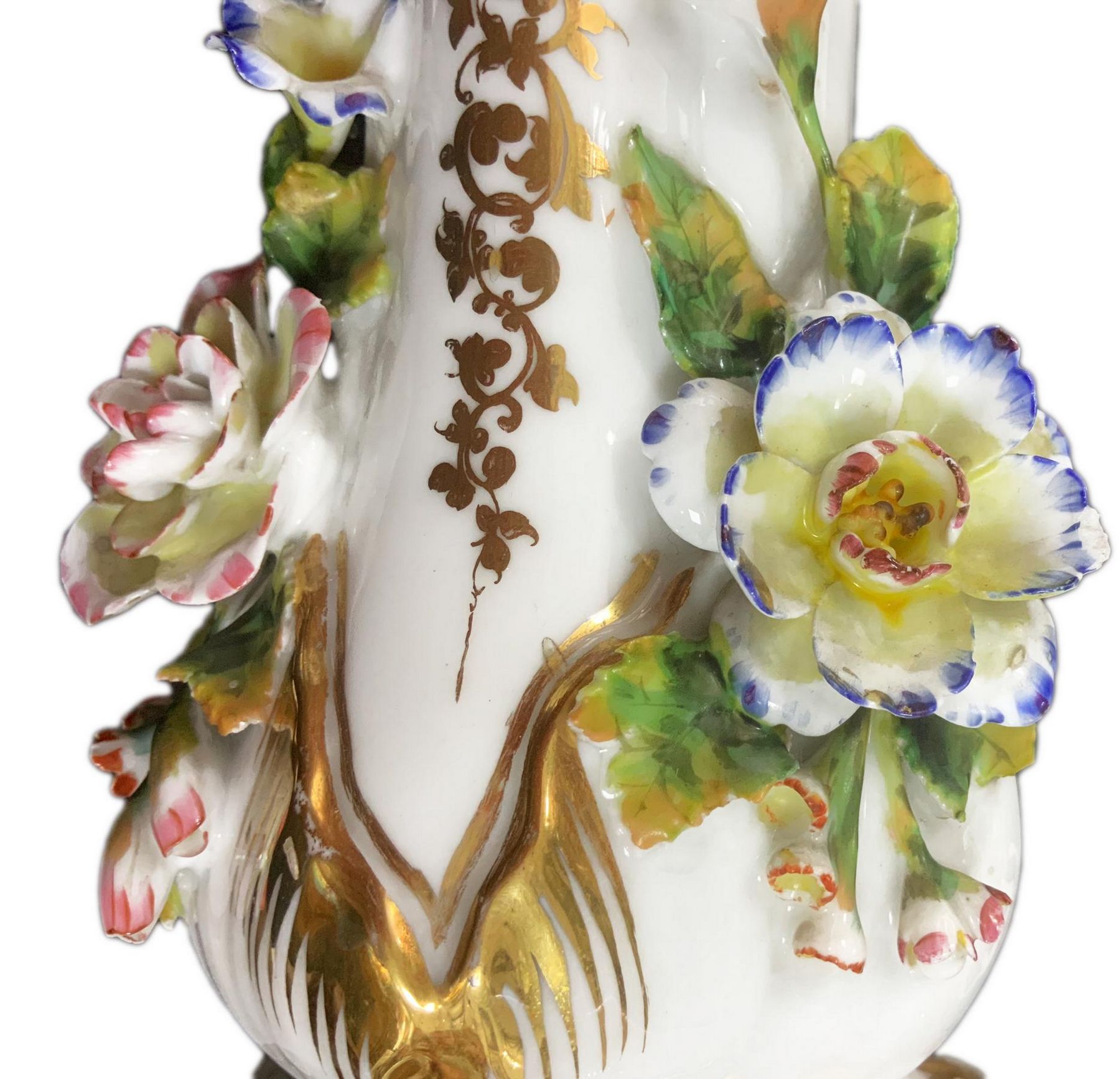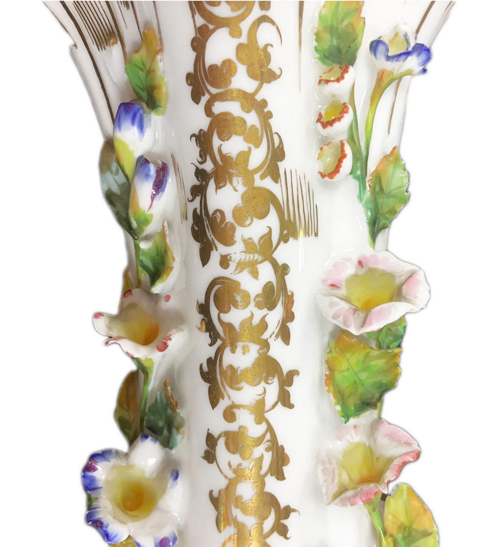 Trittico in porcellana Luigi Filippo con decorazioni floreali e oro, XIX secolo. H cm 44. H cm 32. Piccole sbeccature.