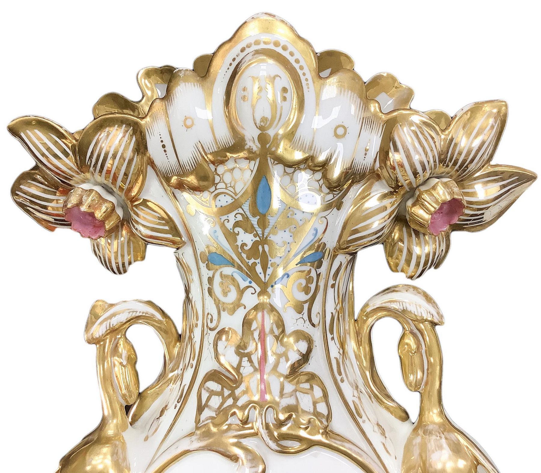Trittico in porcellana Luigi Filippo con decorazioni floreali e oro, XIX...