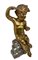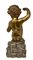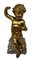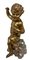 Statua in legno dorato raffigurante puttino seduto su una base di legno...