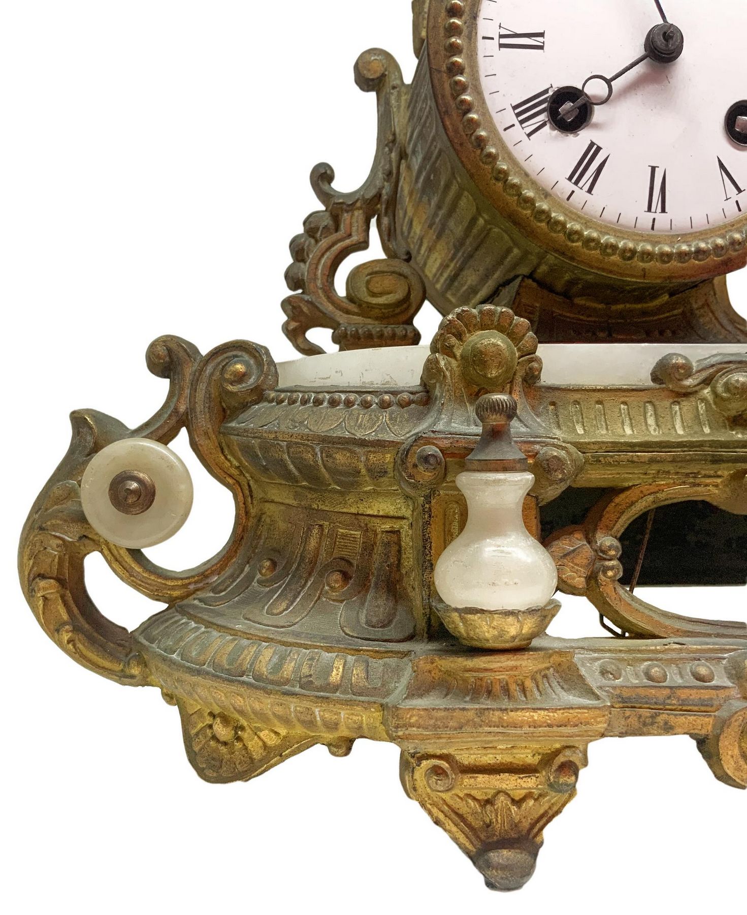 Orologio in bronzo raffigurante giovane ragazzo, con base in alabastro e...