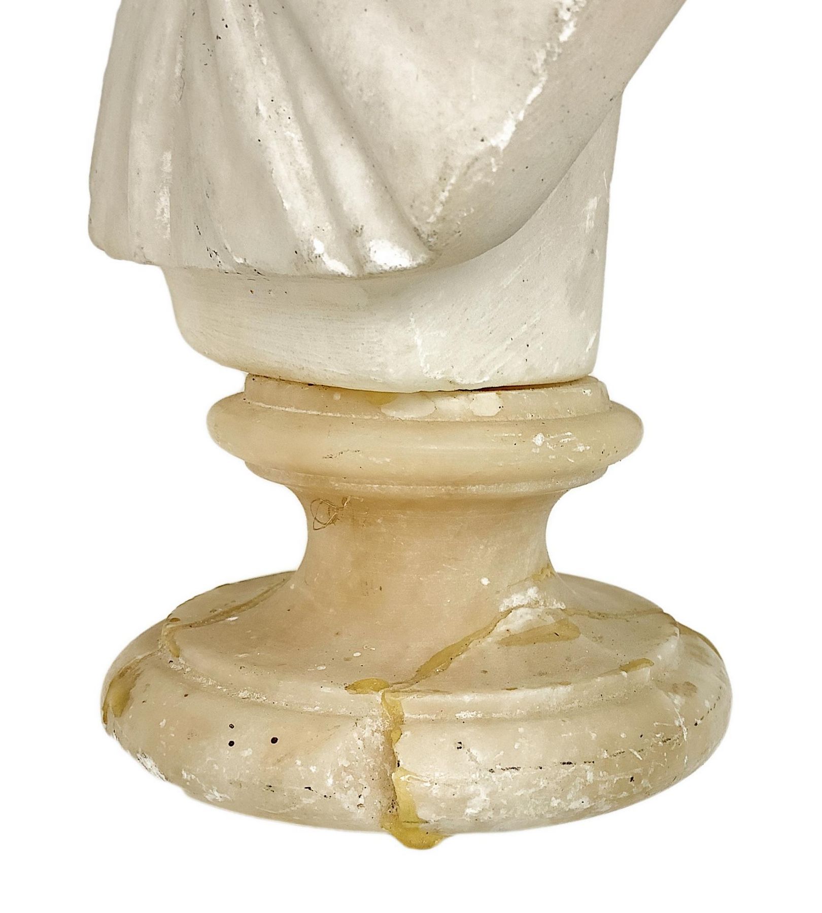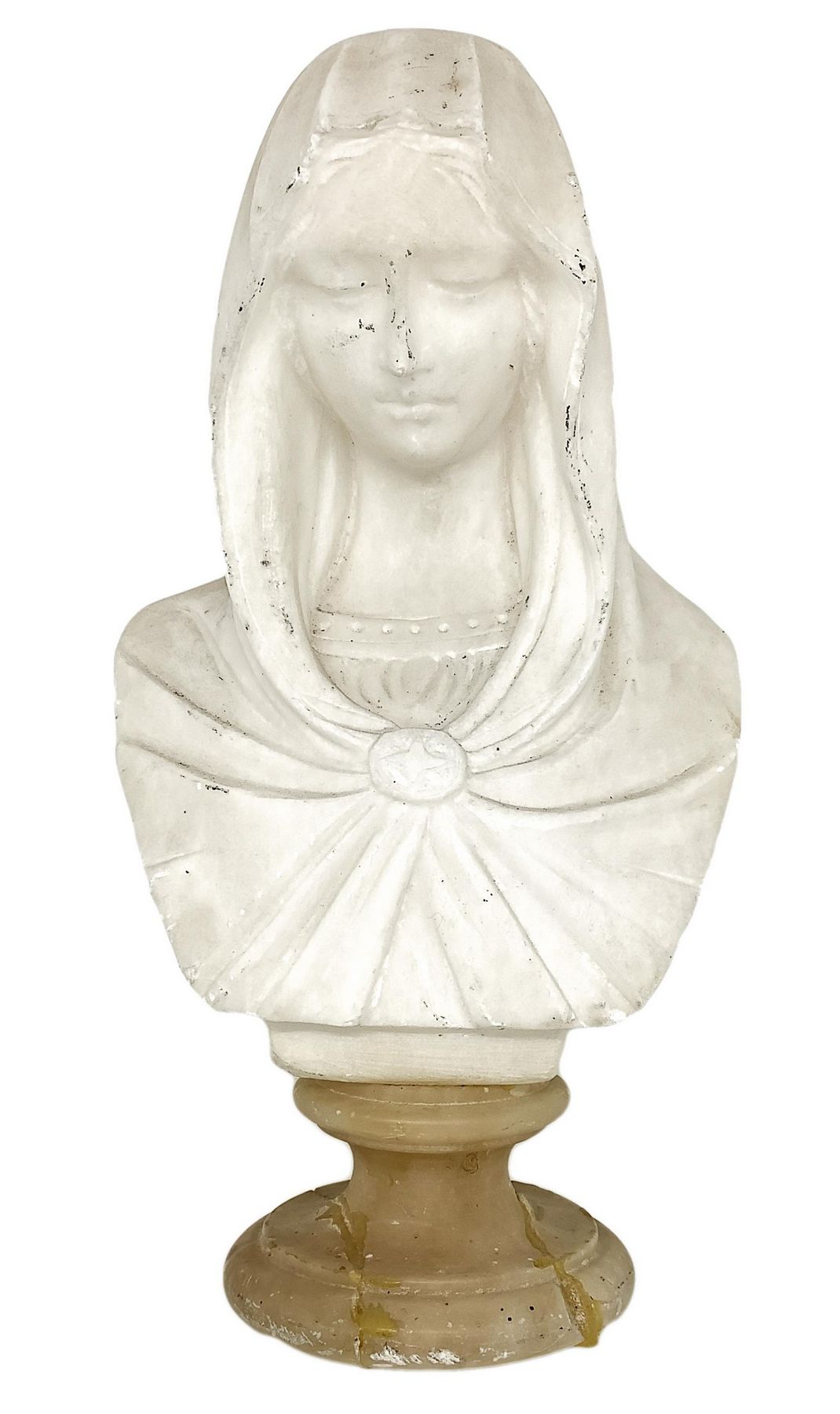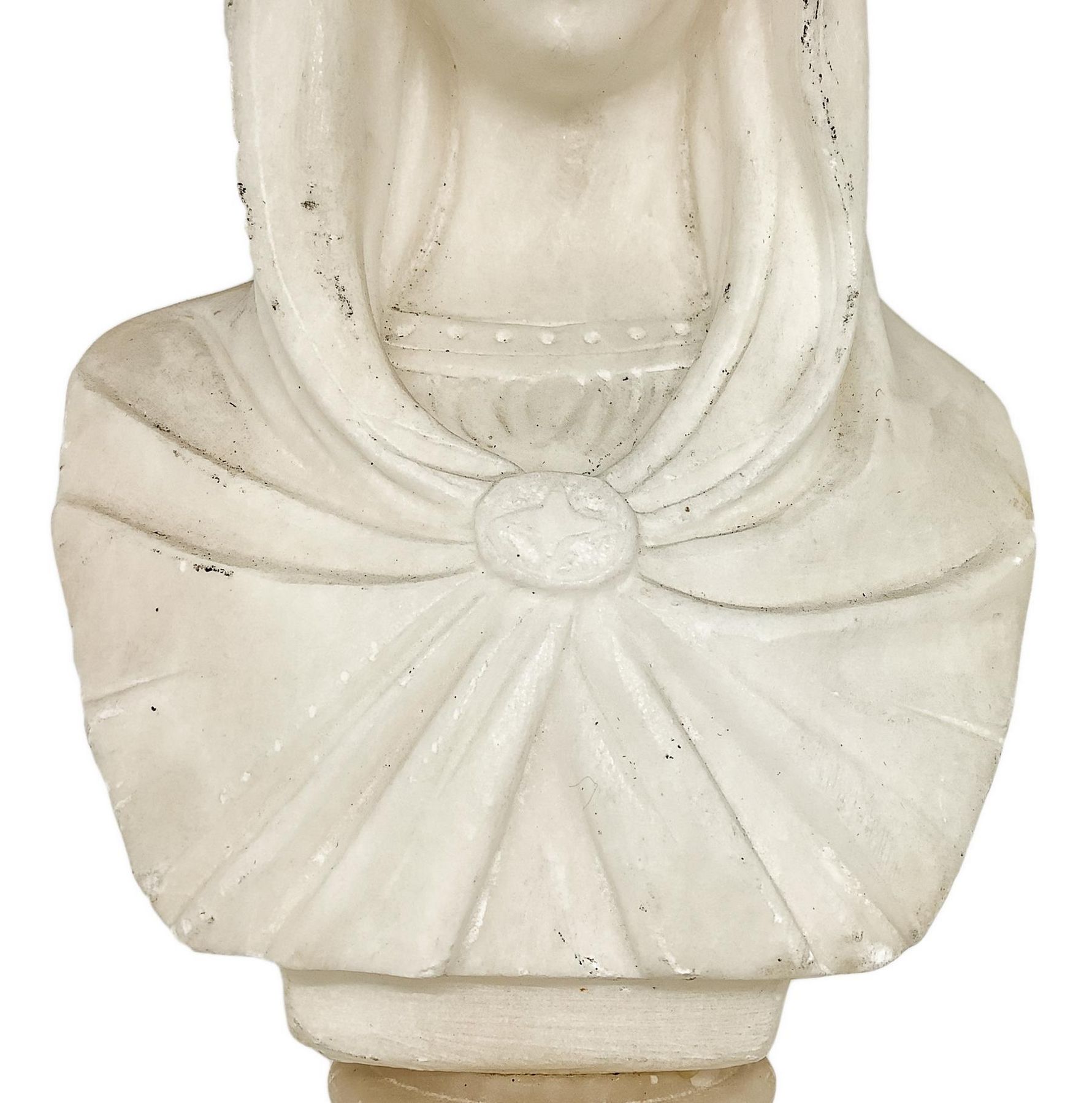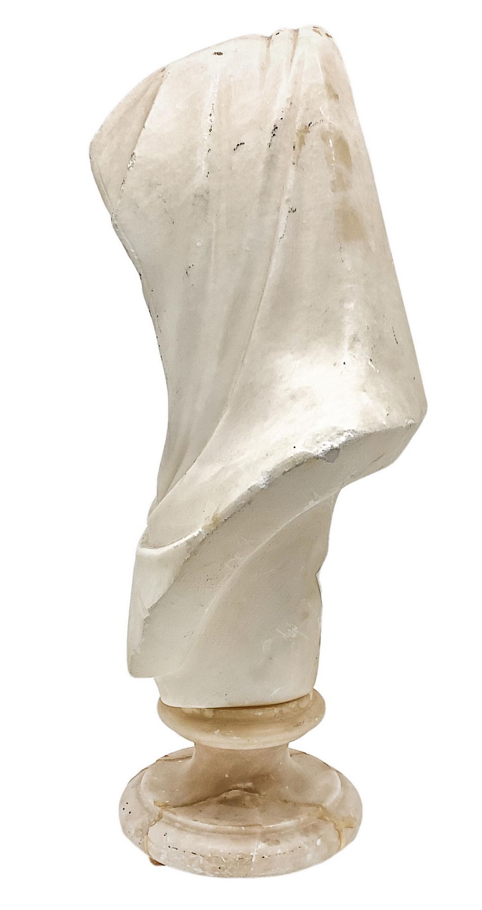 Mezzobusto in marmo bianco raffigurante donna con mantello in testa. Inizi XX...
