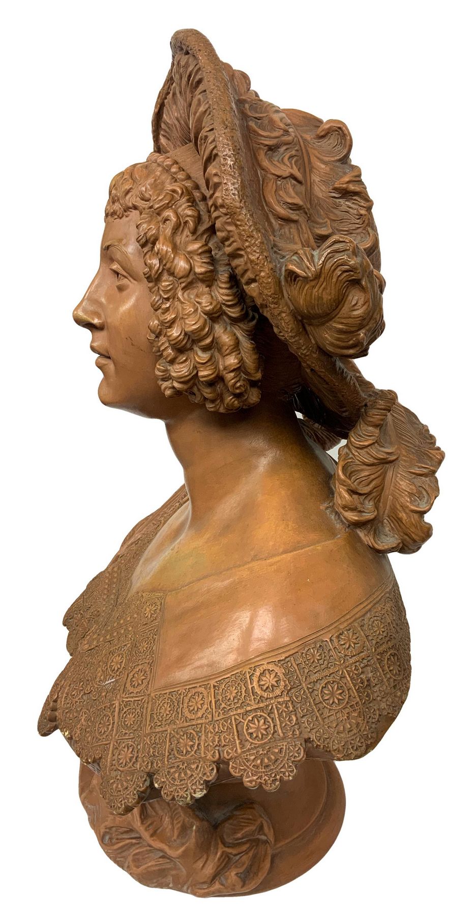 Mezzobusto di donna in terracotta di Jean Rordorf, scultore austriaco del XIX secolo che ha esposto al Salone di Vienna nel 1871.