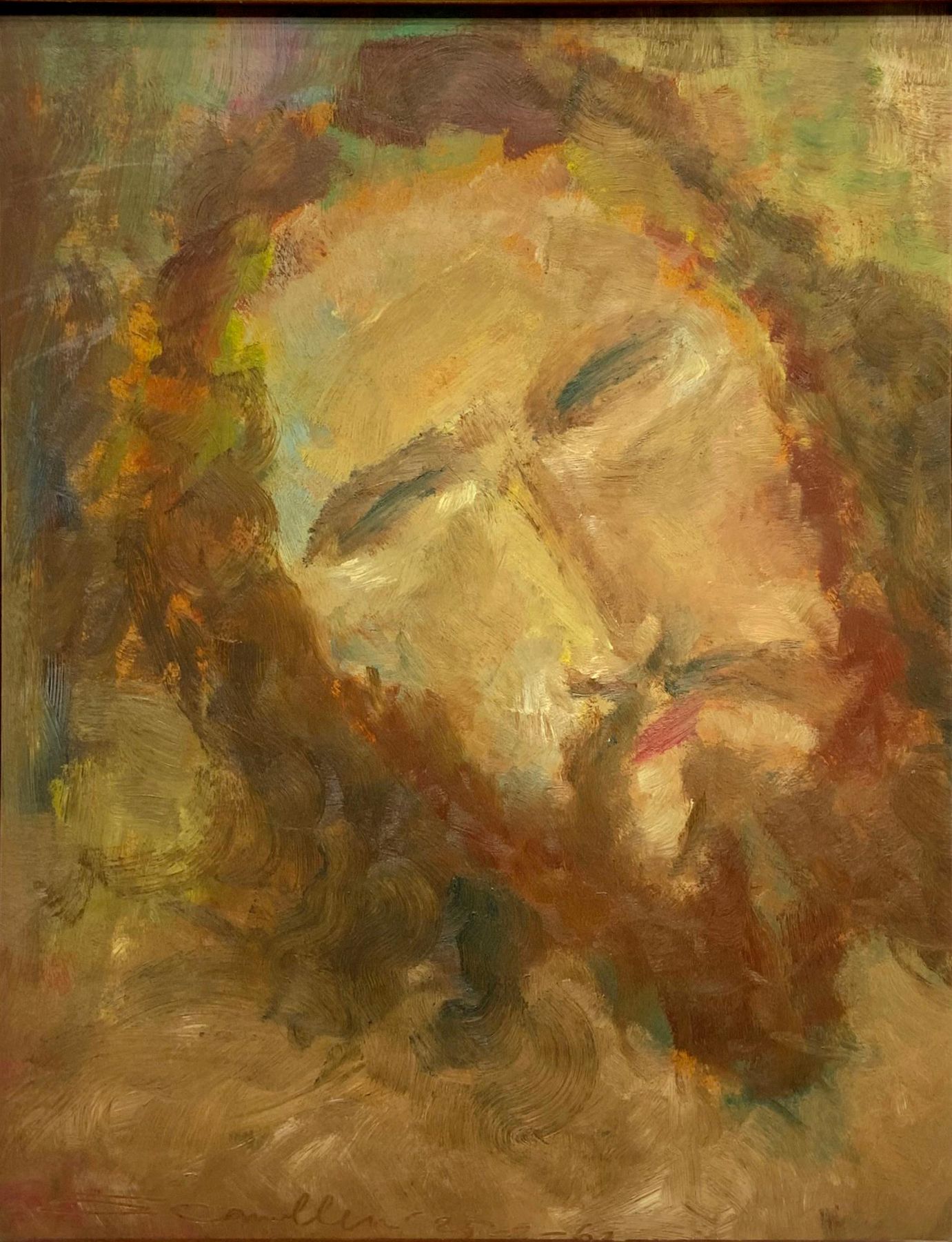Dipinto ad olio su masonite raffigurante volto di Cristo. Cm 42x33. Firmato S.Camilleri e datato 25.2.67 in basso a sinistra.