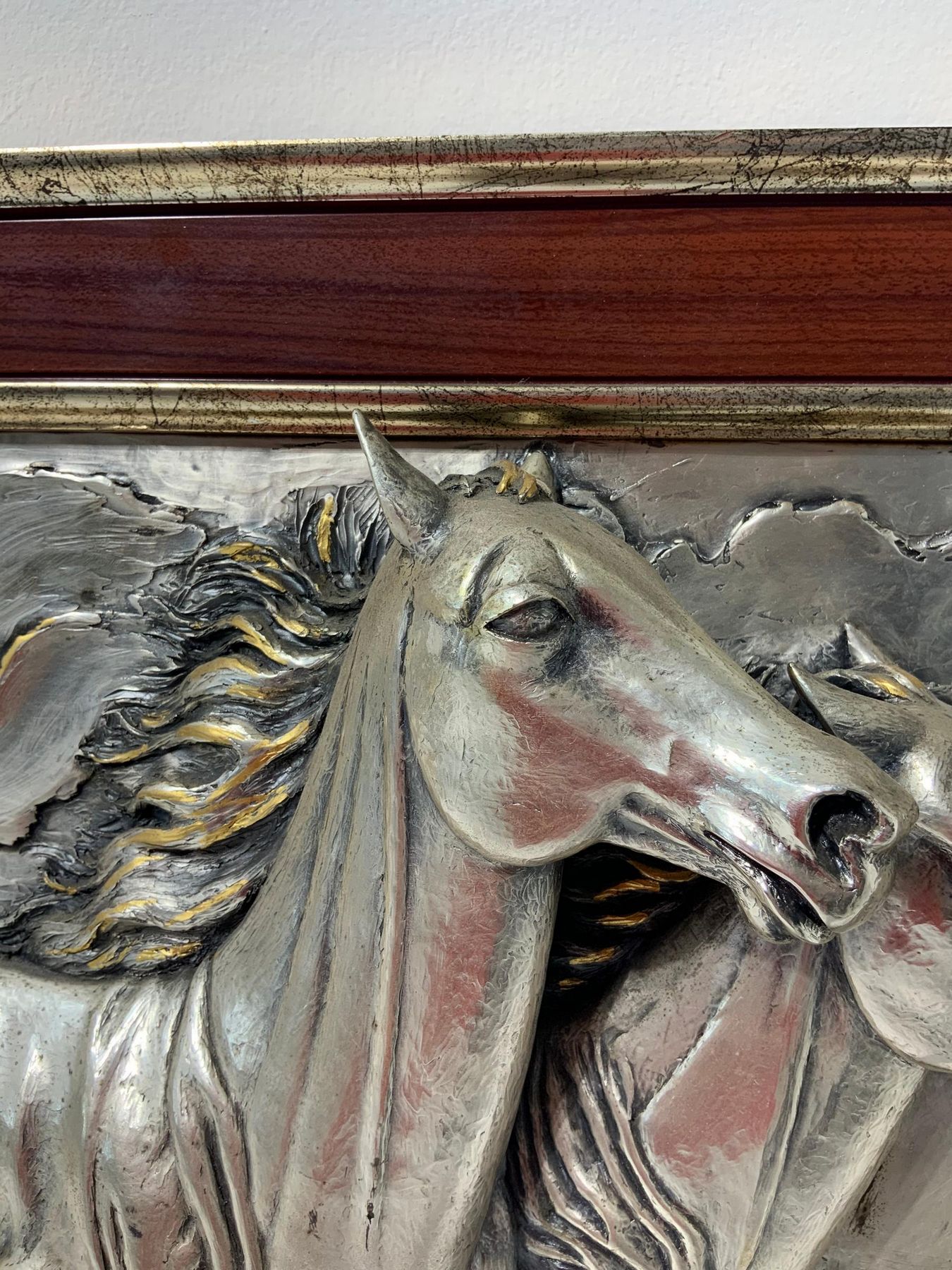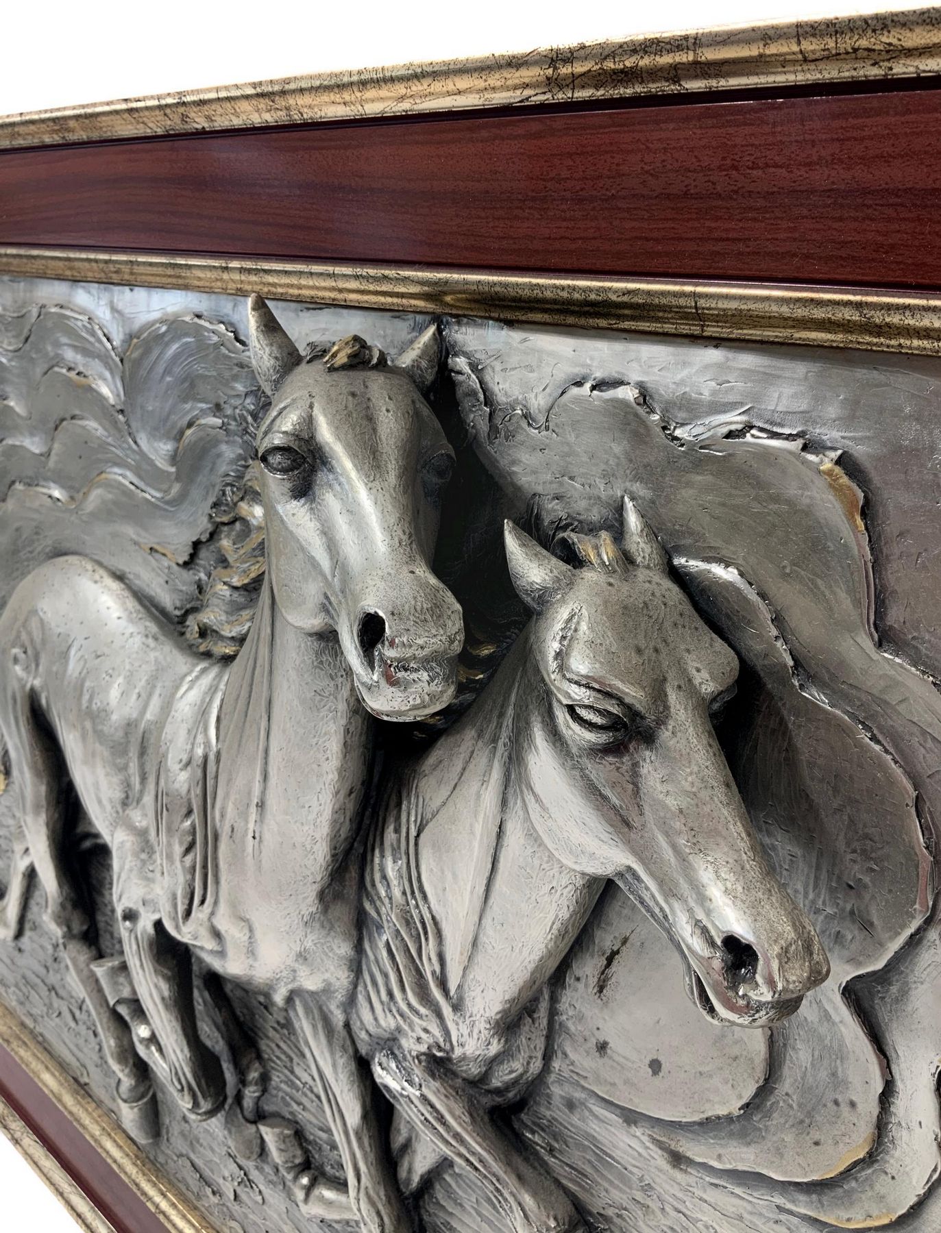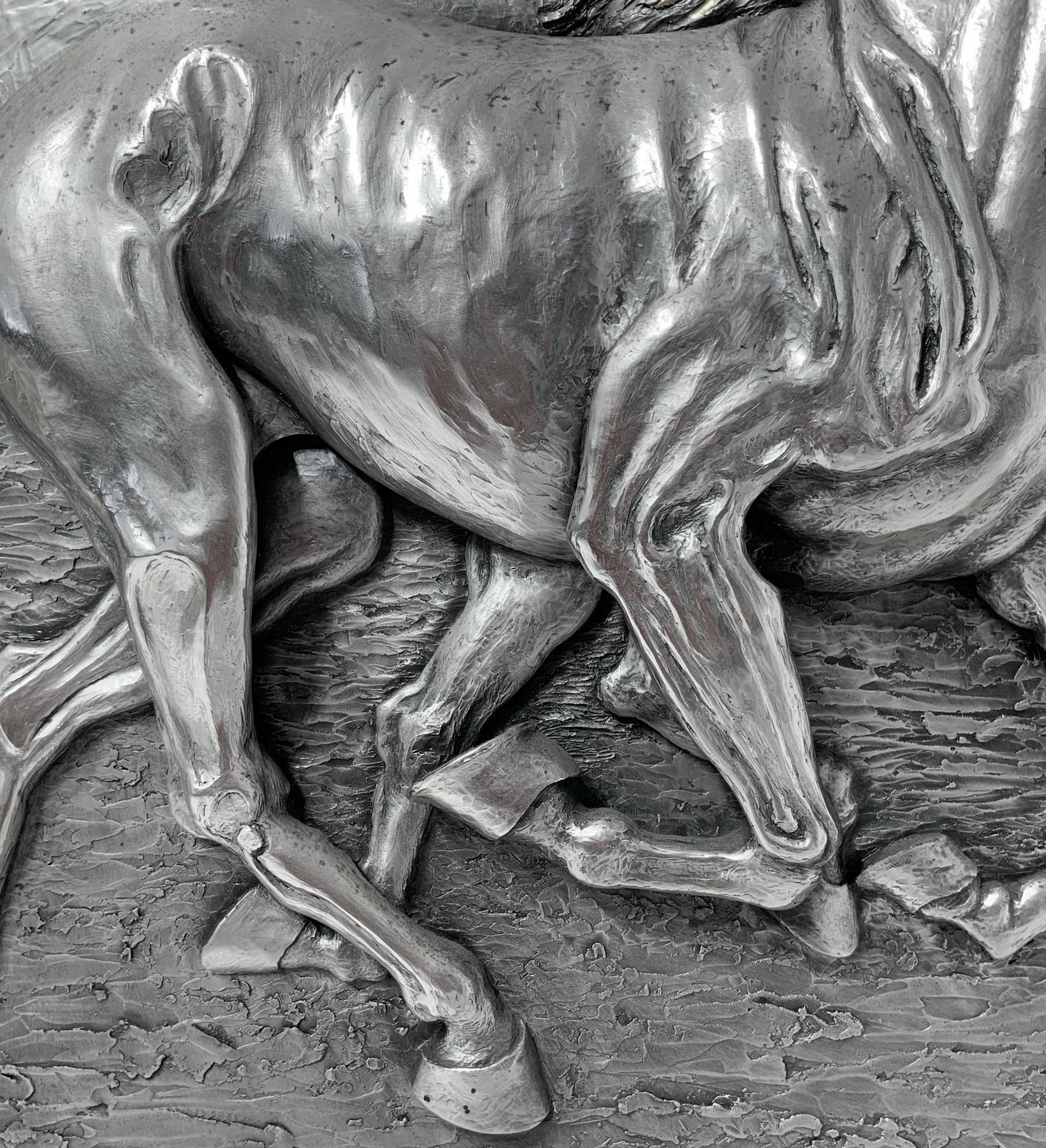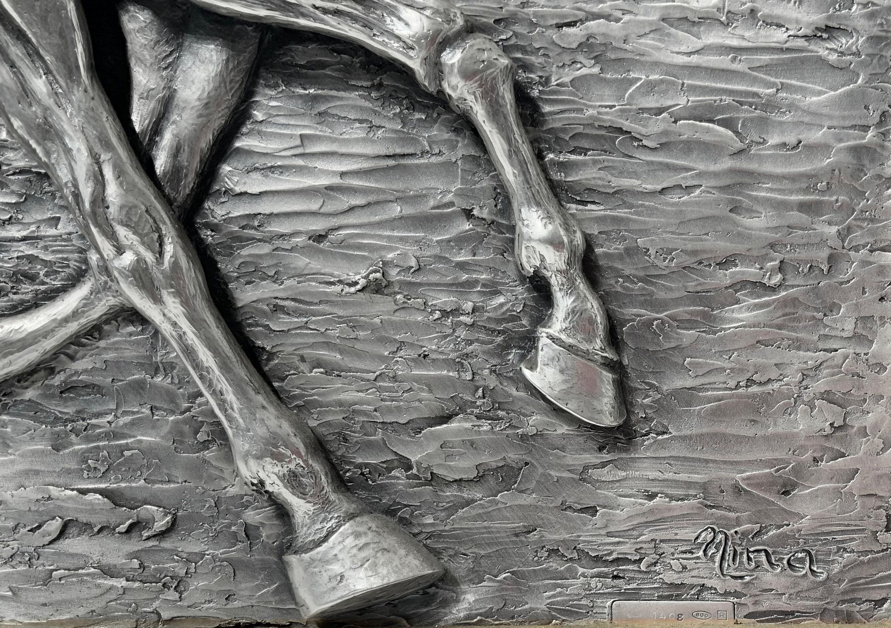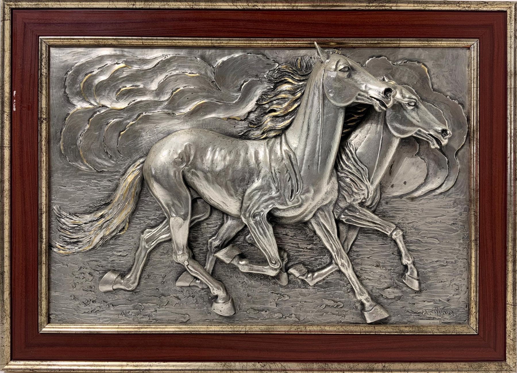 Lastra in argento raffigurante coppia di cavalli in corsa, Mina Bernardo, XX...