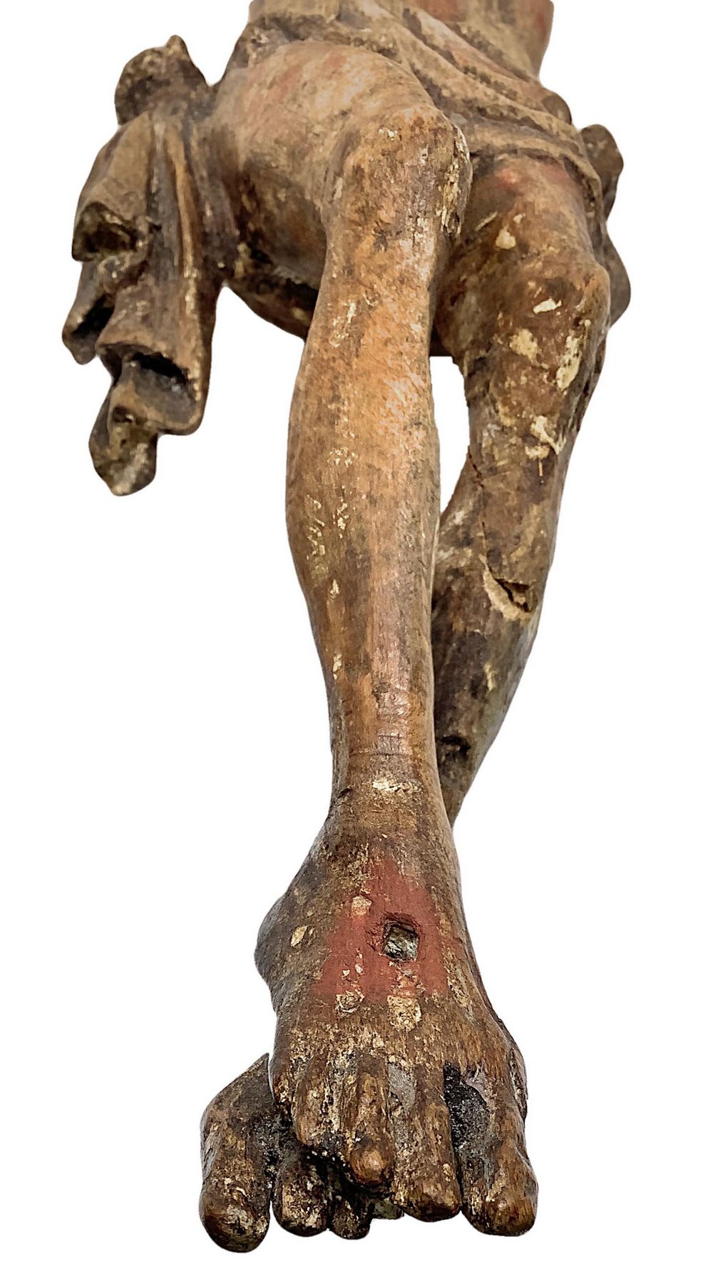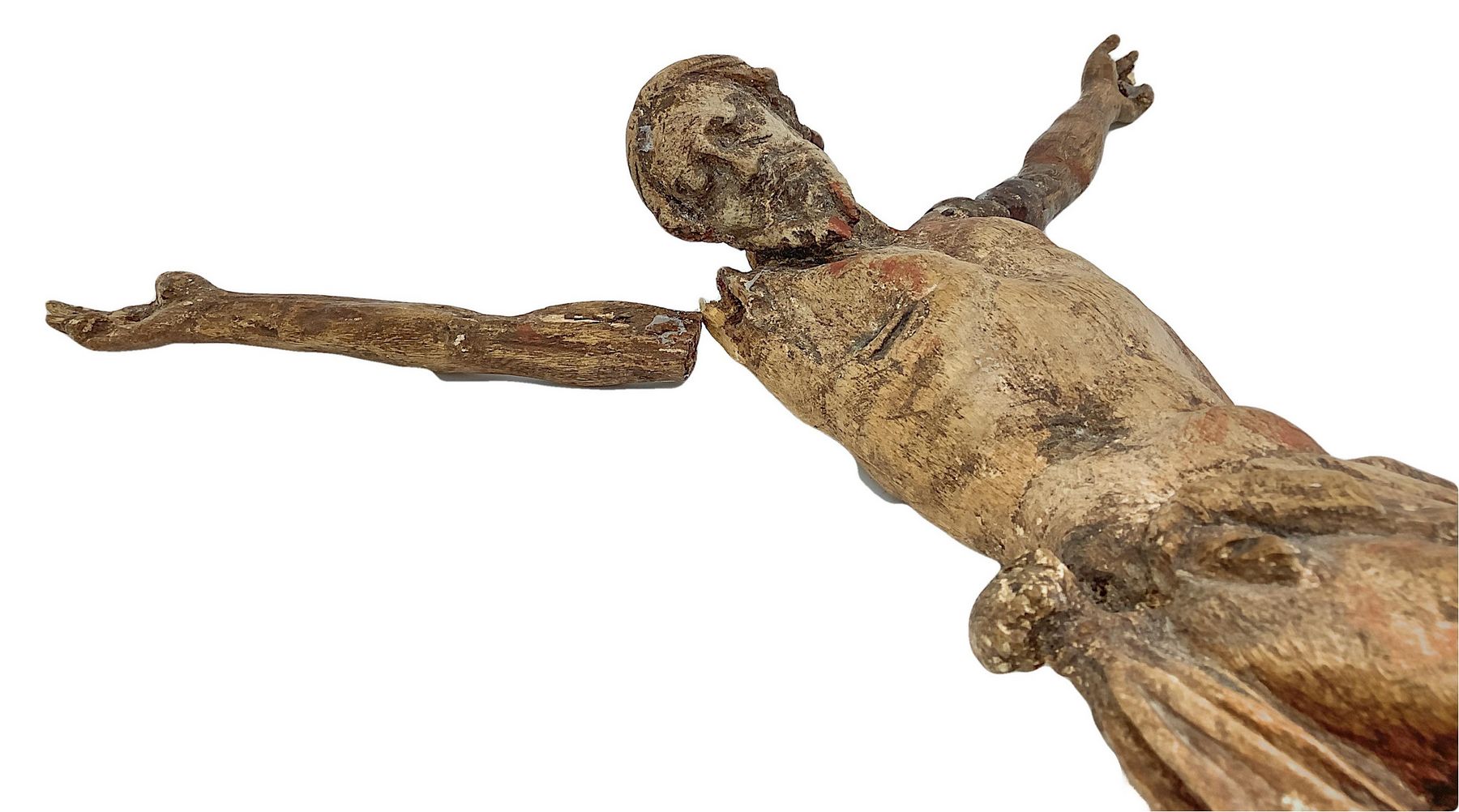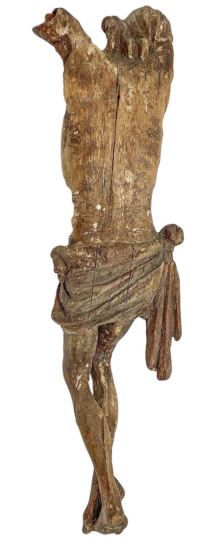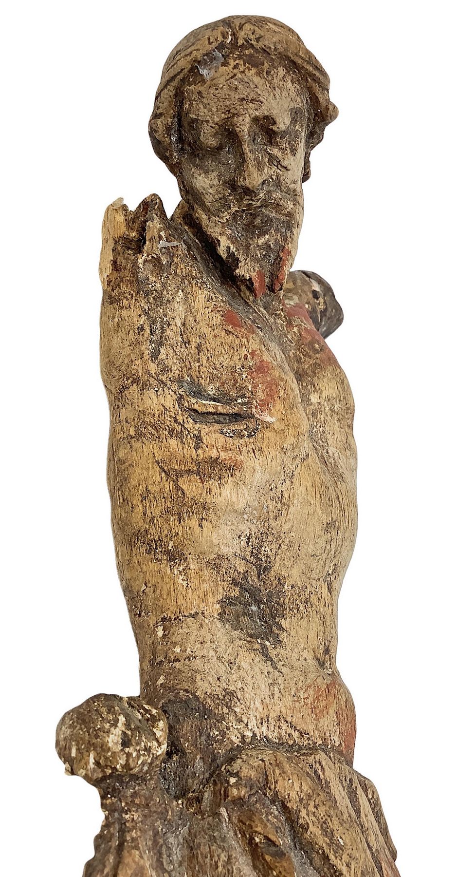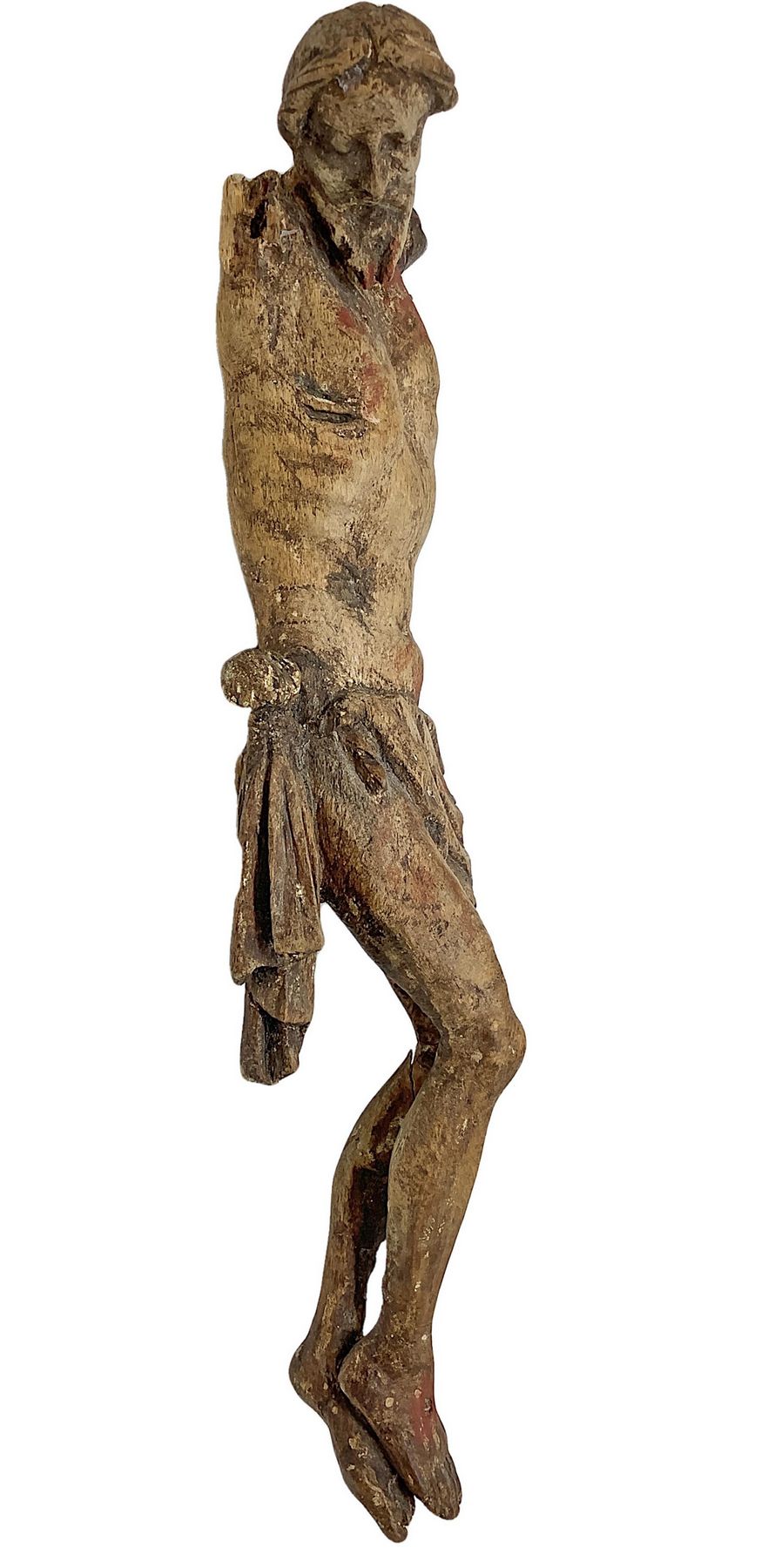Scultura lignea raffigurante cristo, XVI secolo. H cm 36. Braccia da restaurare.