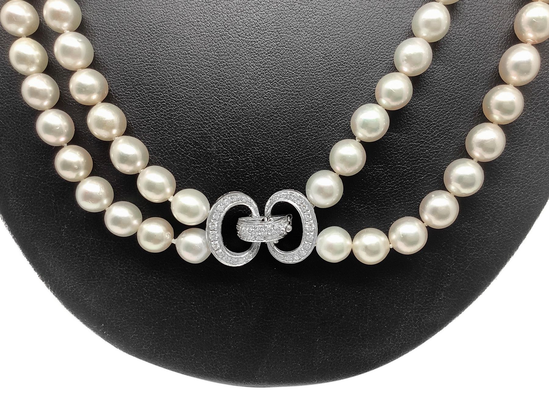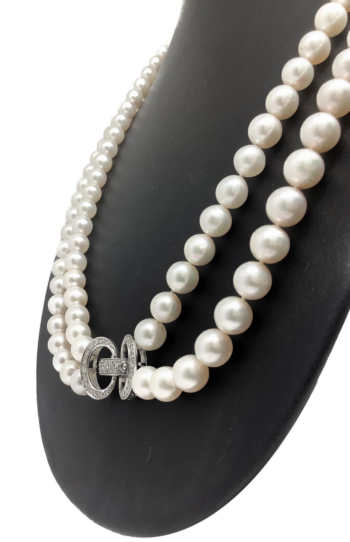 Collana di perle a doppio filo, susta oro B/18 K, Ca 5 gr, diamanti Ca 0.70,...