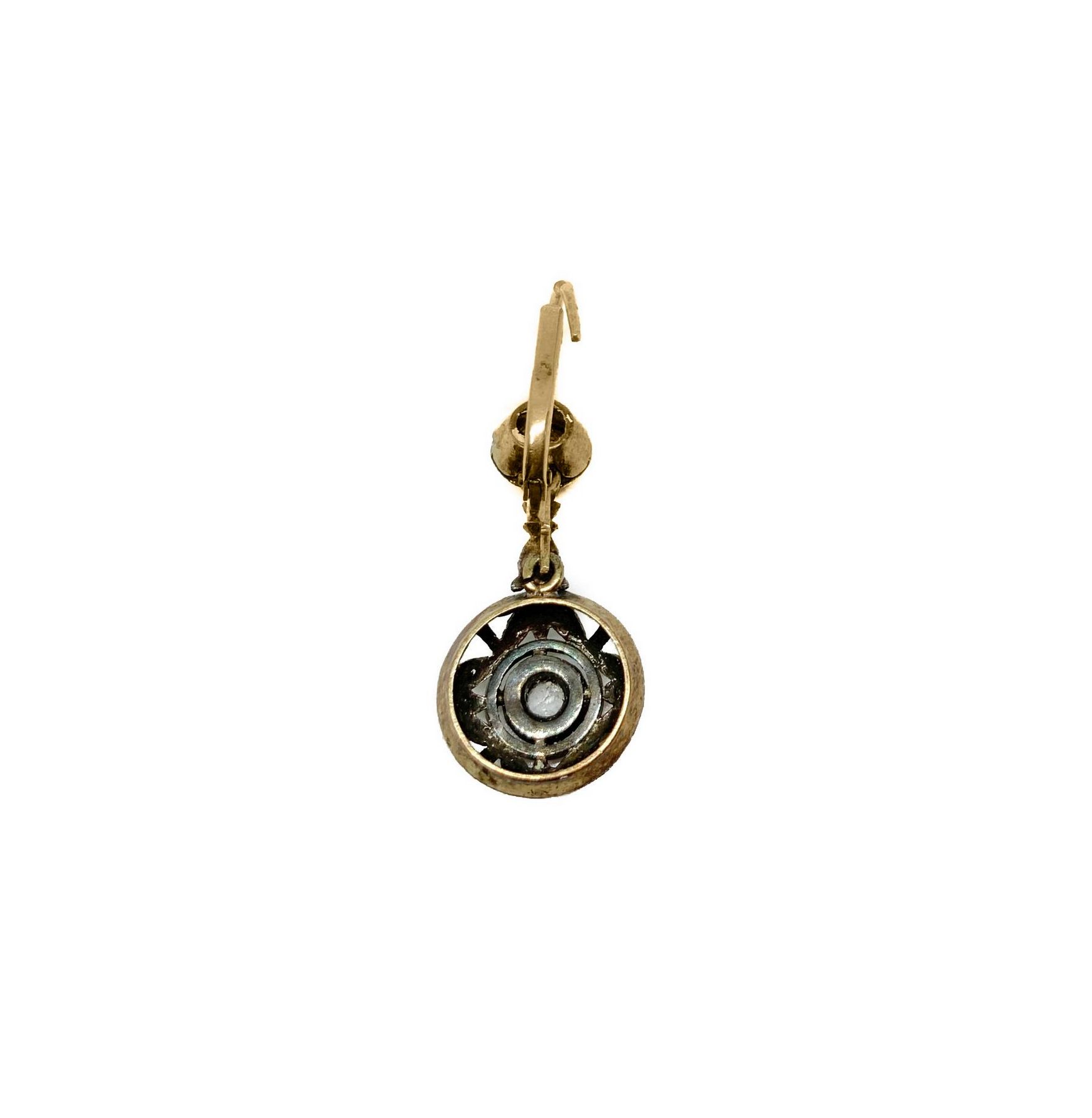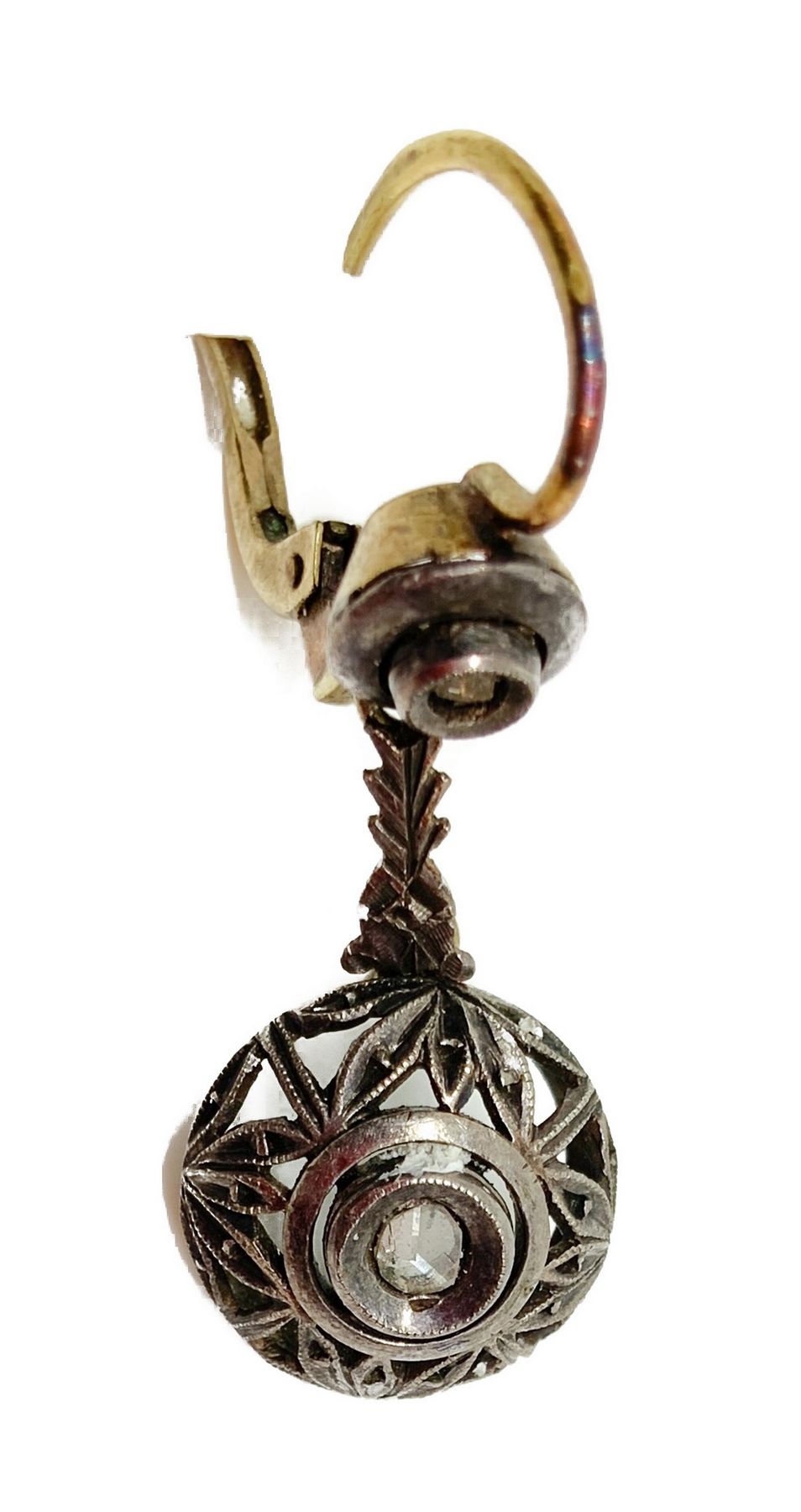 Orecchini argento e oro, piccoli pendenti con diamanti rose corone, XIX secolo. Gr 4.2