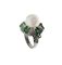 Anello in oro bianco con perla, brillanti e smeraldi. Gr 11.7