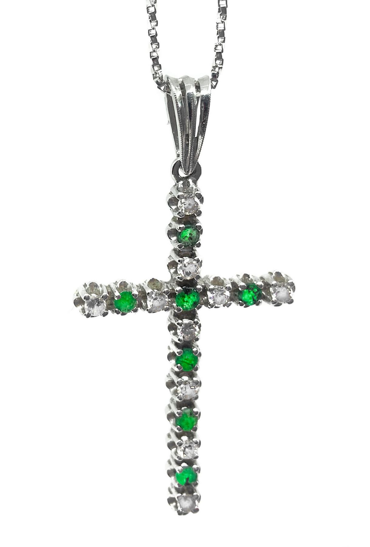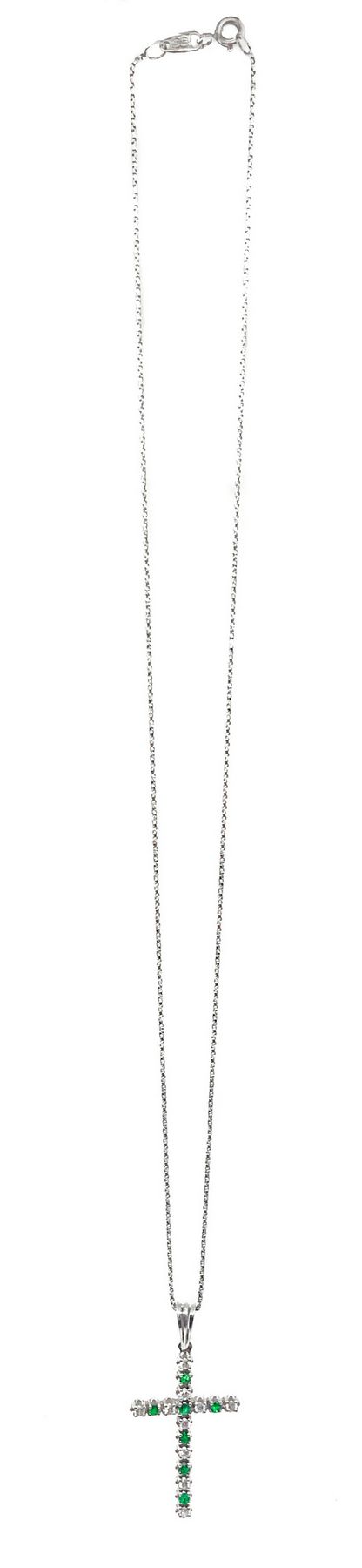 Lotto 284 | Collana in oro bianco e croce con smeraldi e brillanti. Gr 5.1