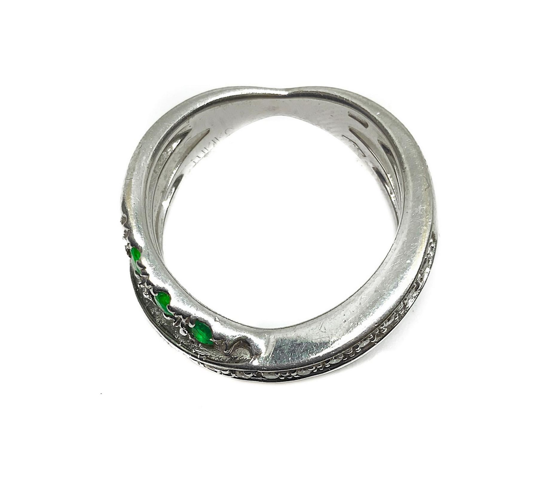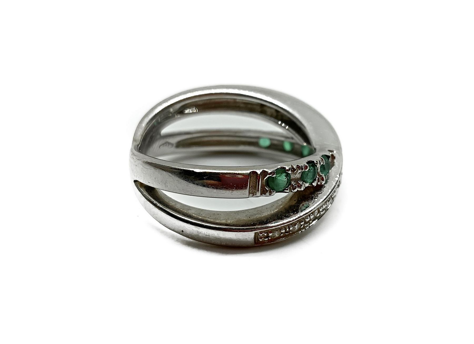Anello a doppio giro a incrociare di cui uno con smeraldi e uno brillanti. Gr 7.6