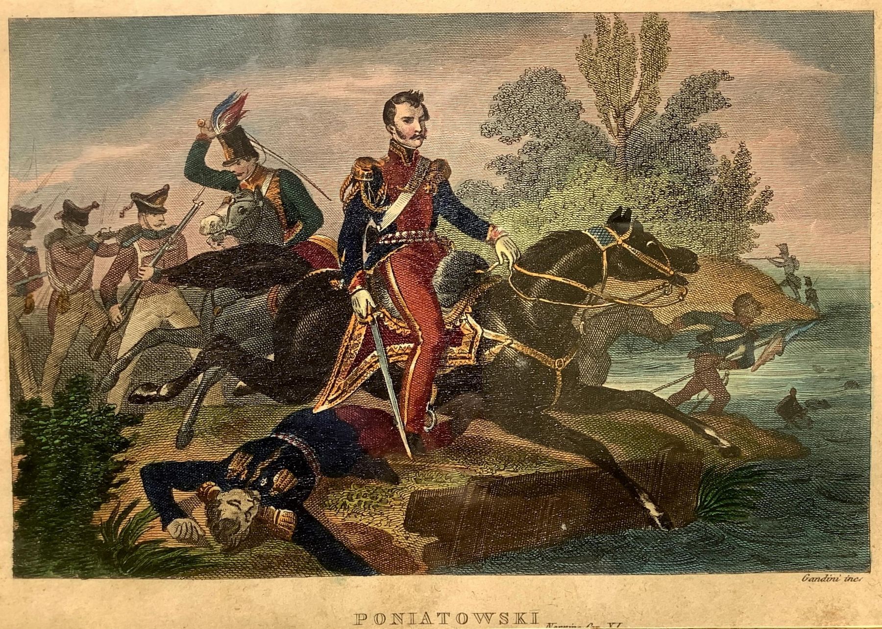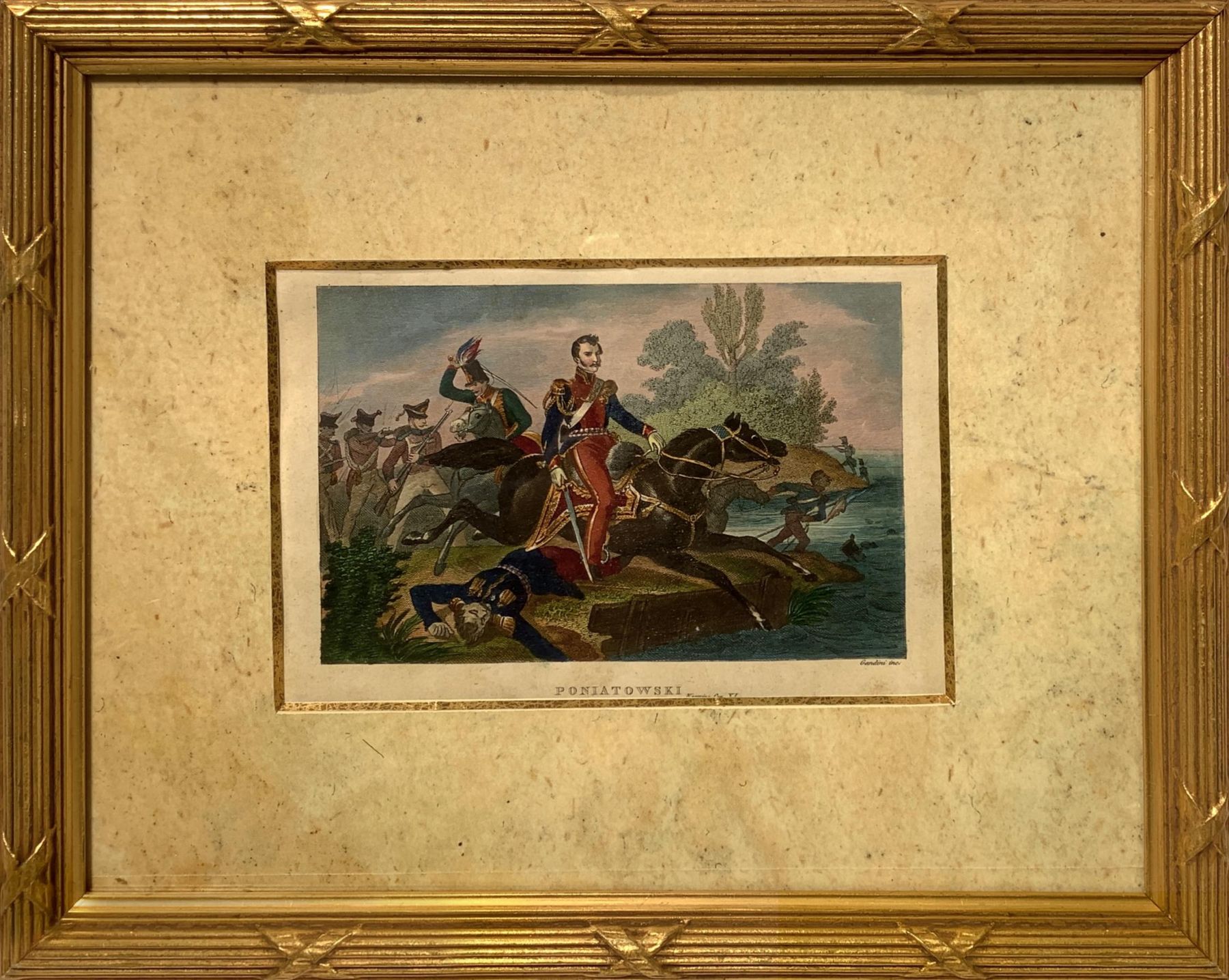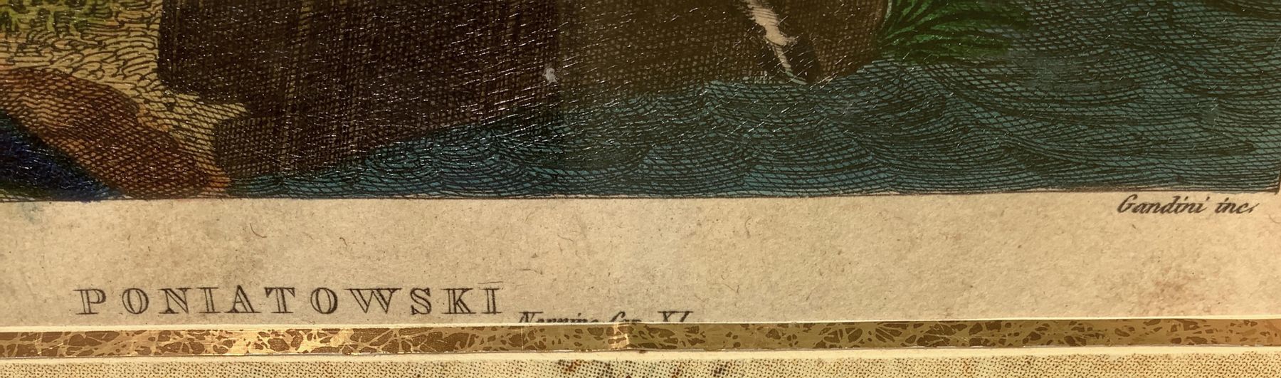 Incisione in bella cornice in legno dorato di Domenico Gandini a colori raffigurante Poniatowski 250x310 mm