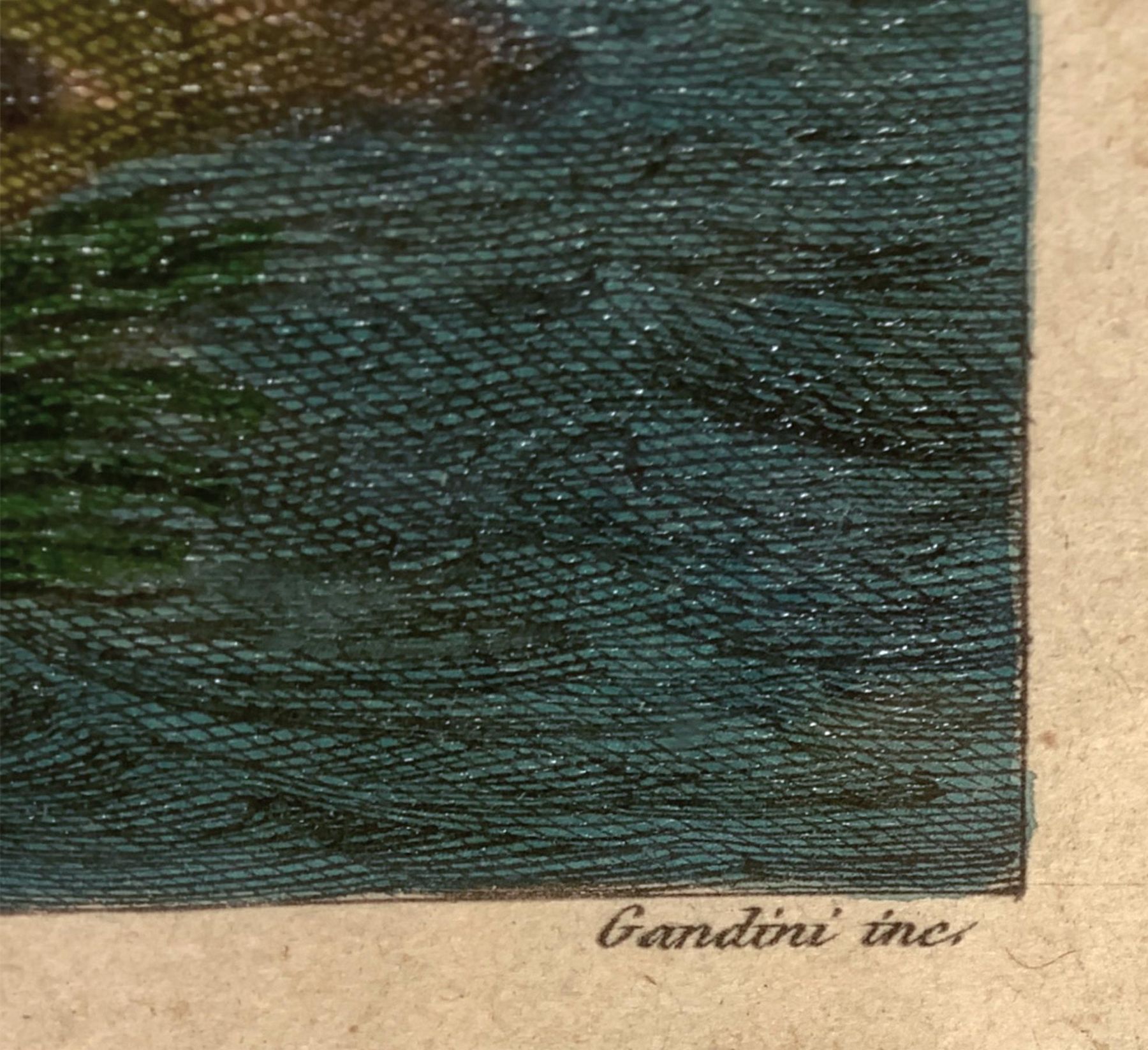 Incisione in bella cornice in legno dorato di Domenico Gandini a colori...