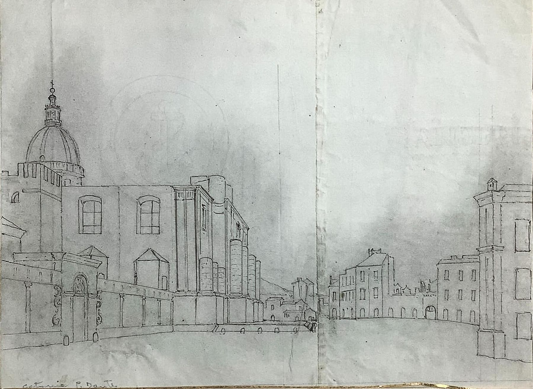 Disegno su carta raffigurante Piazza Dante (Catania, Sicilia), XIX secolo....