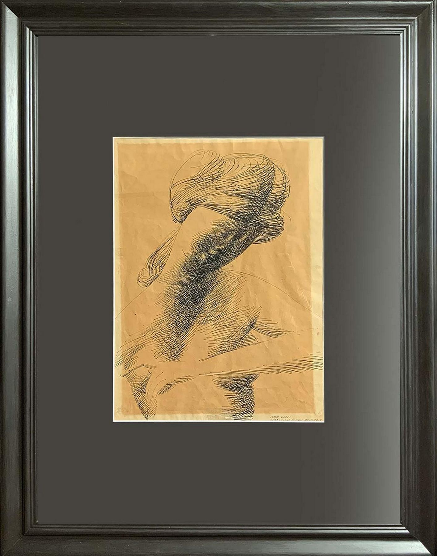 Emilio Greco (Catania, 1913-Roma,1995). Nudo di donna. 49x35, disegno a china su carta. Firmato a destra e siglato Roma. Sul retro altro disegno accennato e scritta : Largo di Villa Massimo 2 e data 1953. Etichette di mostre. "Il riconoscimento internazionale per l’artista si ebbe alla Biennale di Venezia del 1956 con il Gran Premio per la Scultura, i suoi disegni e le sue sculture rispecchiano un ideale di bellezza che attraverso forme tornite, allungate e ben fornite si riportano ad un manierismo arcaico della Scuola di Fontainebleau. Suo punto di riferimento può considerarsi lo scultore Pericle Fazzini.