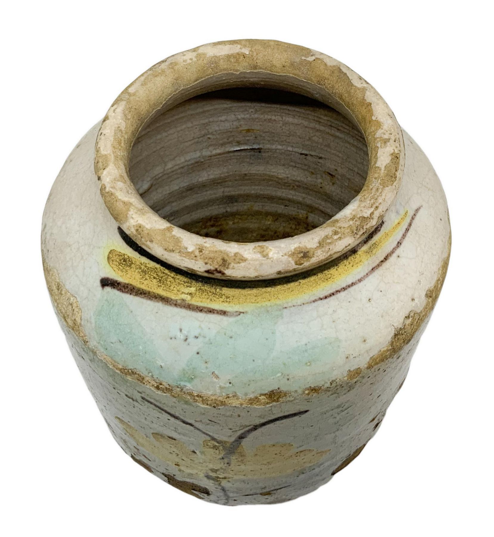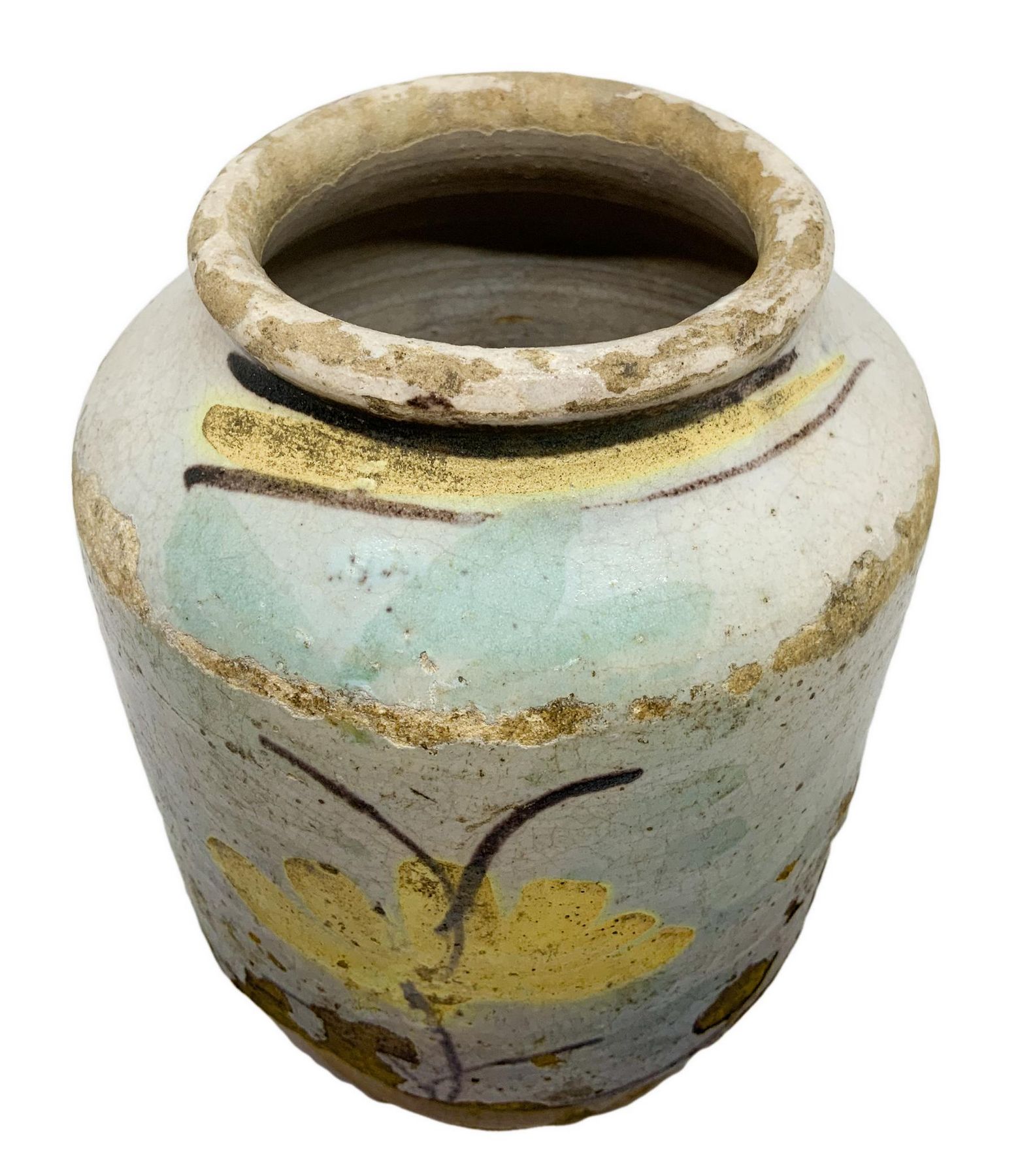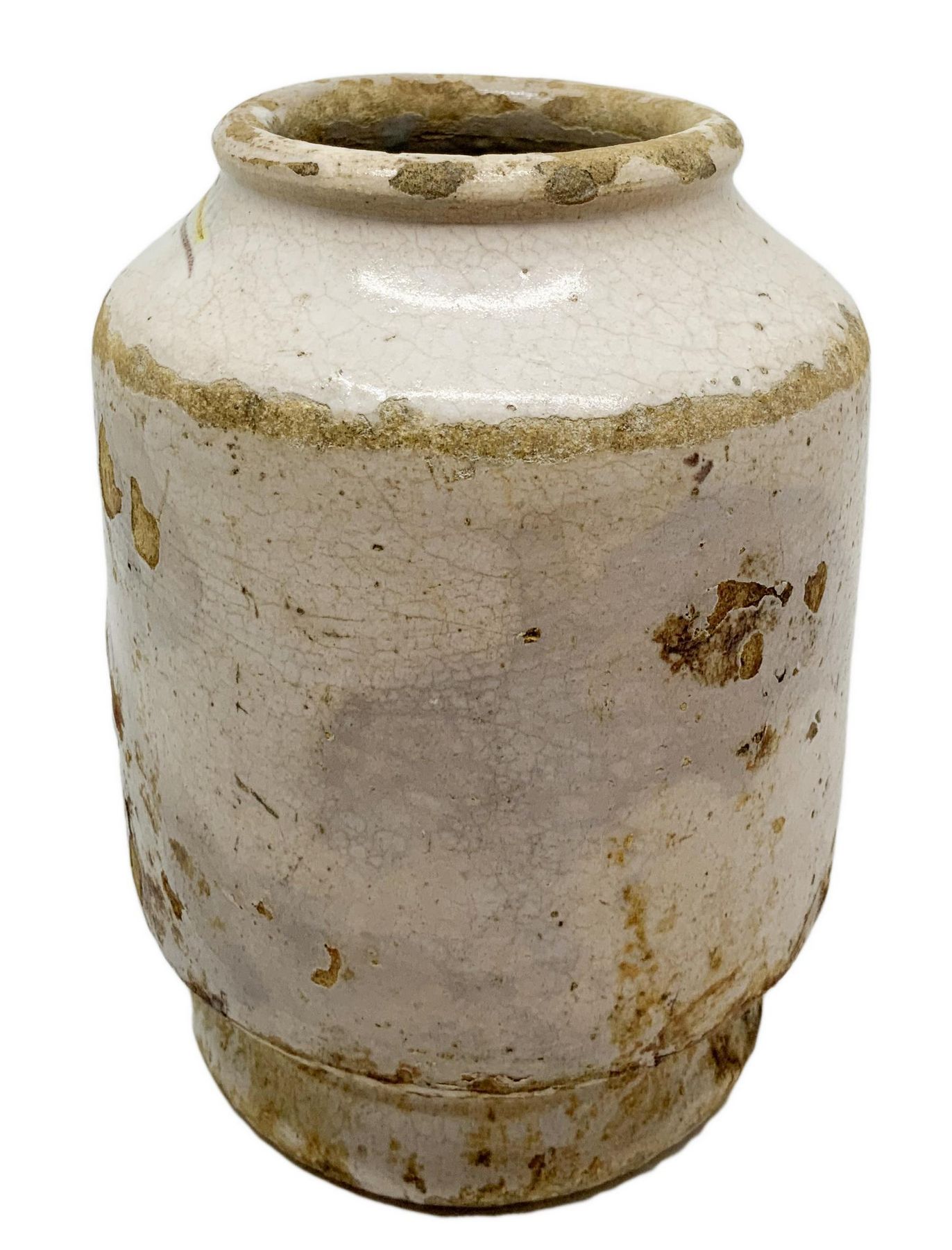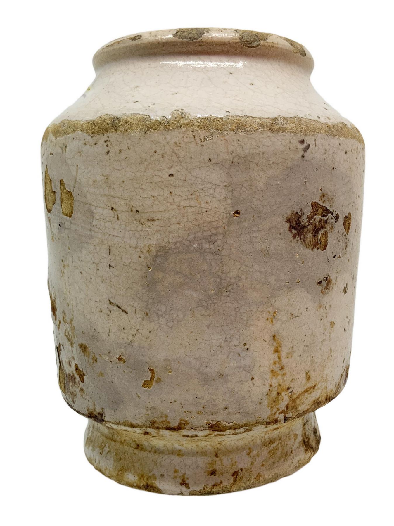 Cilindro in pasta bianca con decori floreali gialli sul fondo bianco, inizi XIX secolo. H cm 14.