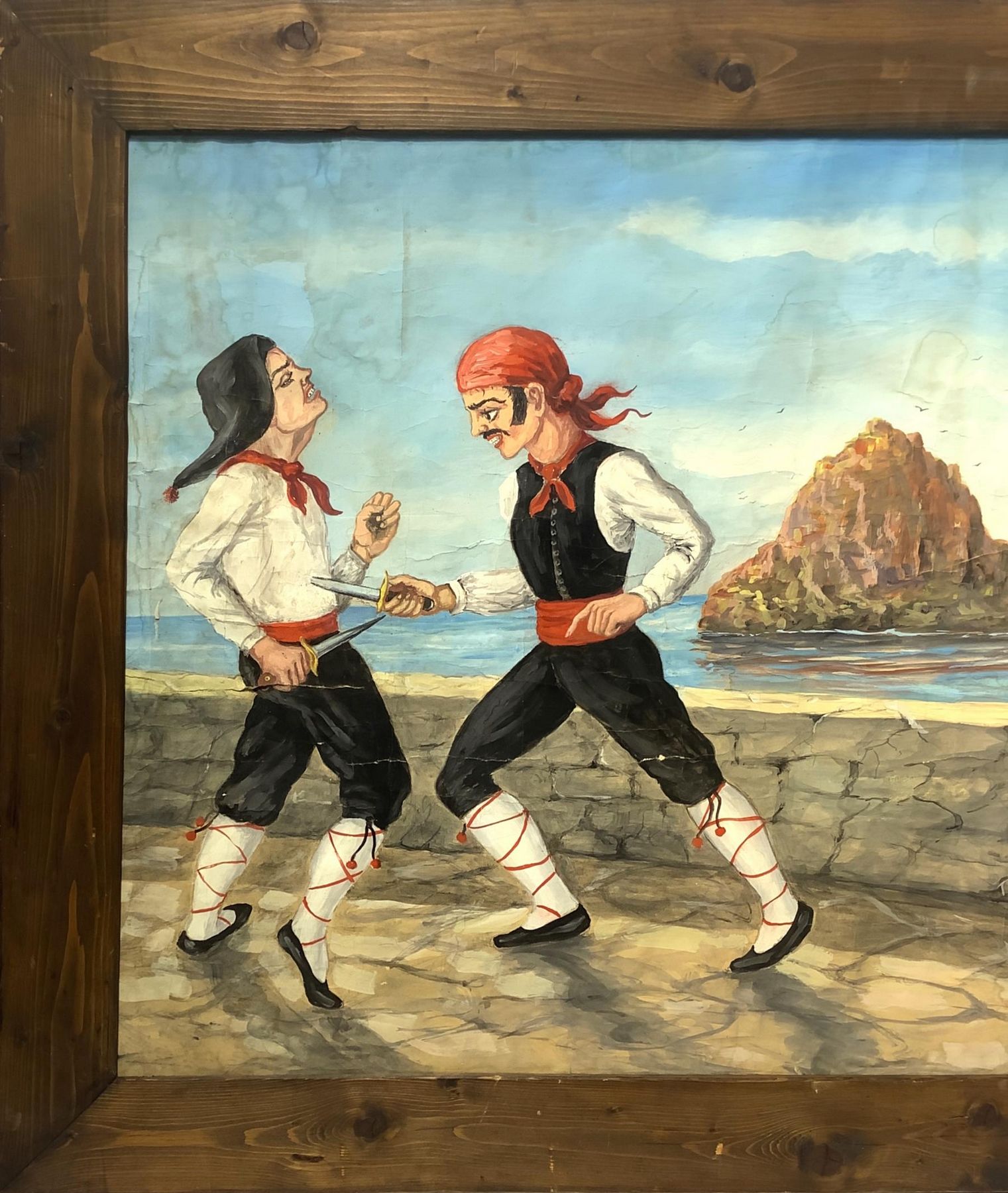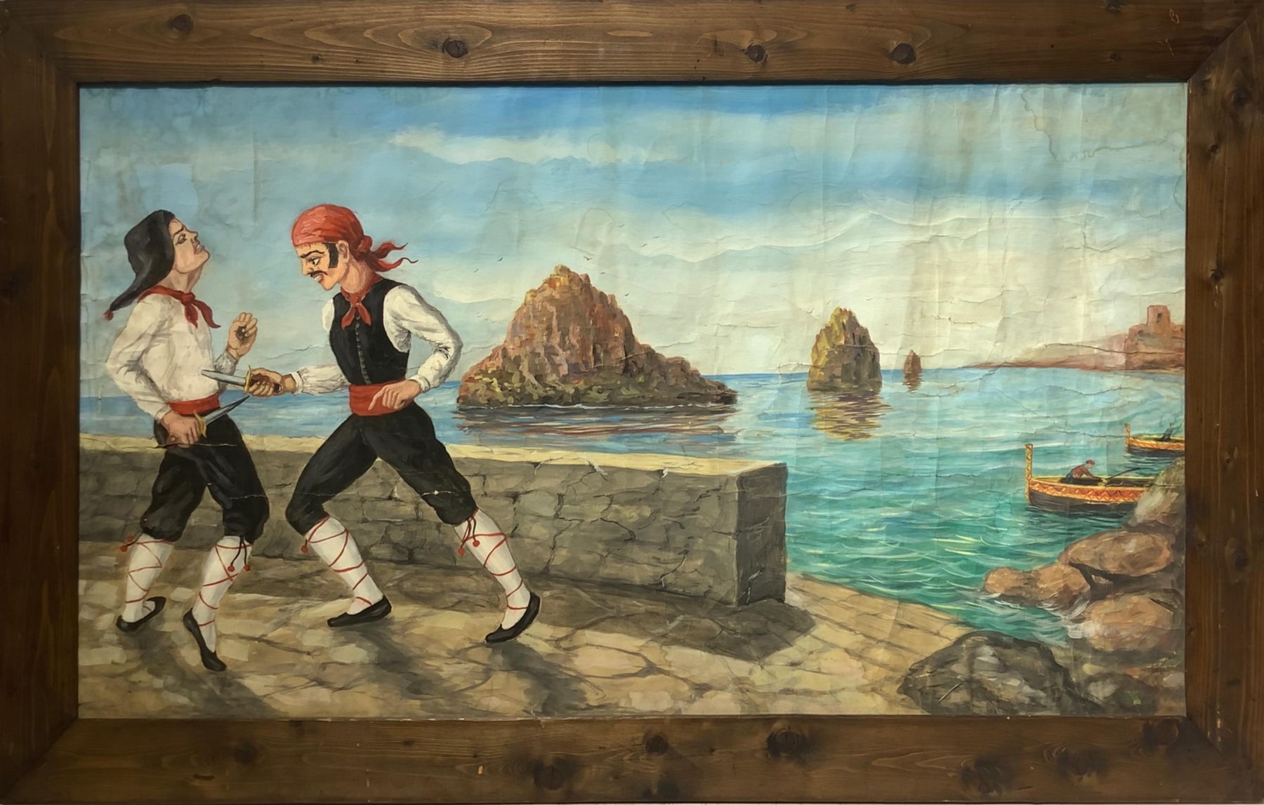 Lotto 362 | Gouache su carta raffigurante duello rusticano nei pressi di Acitrezza. XX...
