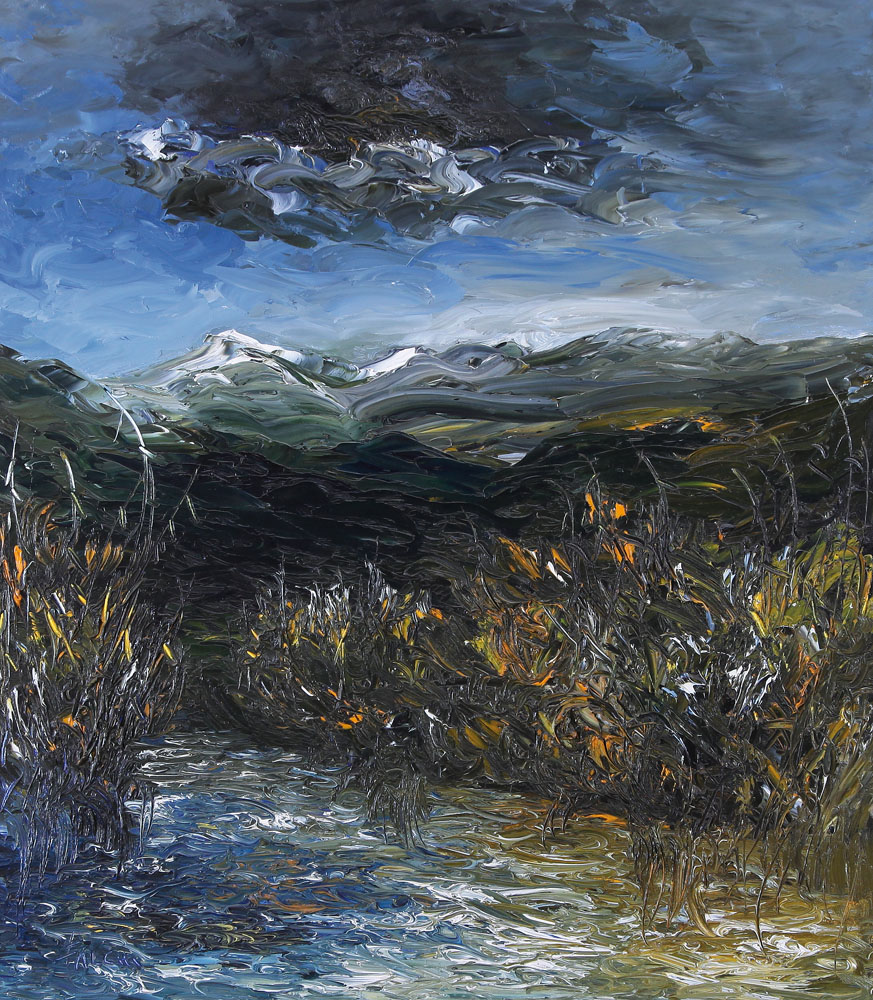 MARIO FALCHI Porto Maurizio 1950 Palude, 1993 olio su tela cm. 80x70, firma in basso a sinistra, firma, titolo e anno al retro, dichiarazione d'autenticità dell'artista su foto.