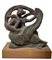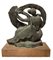 Scultura in terracotta patinata a bronzo con base in legno raffigurante Leda...