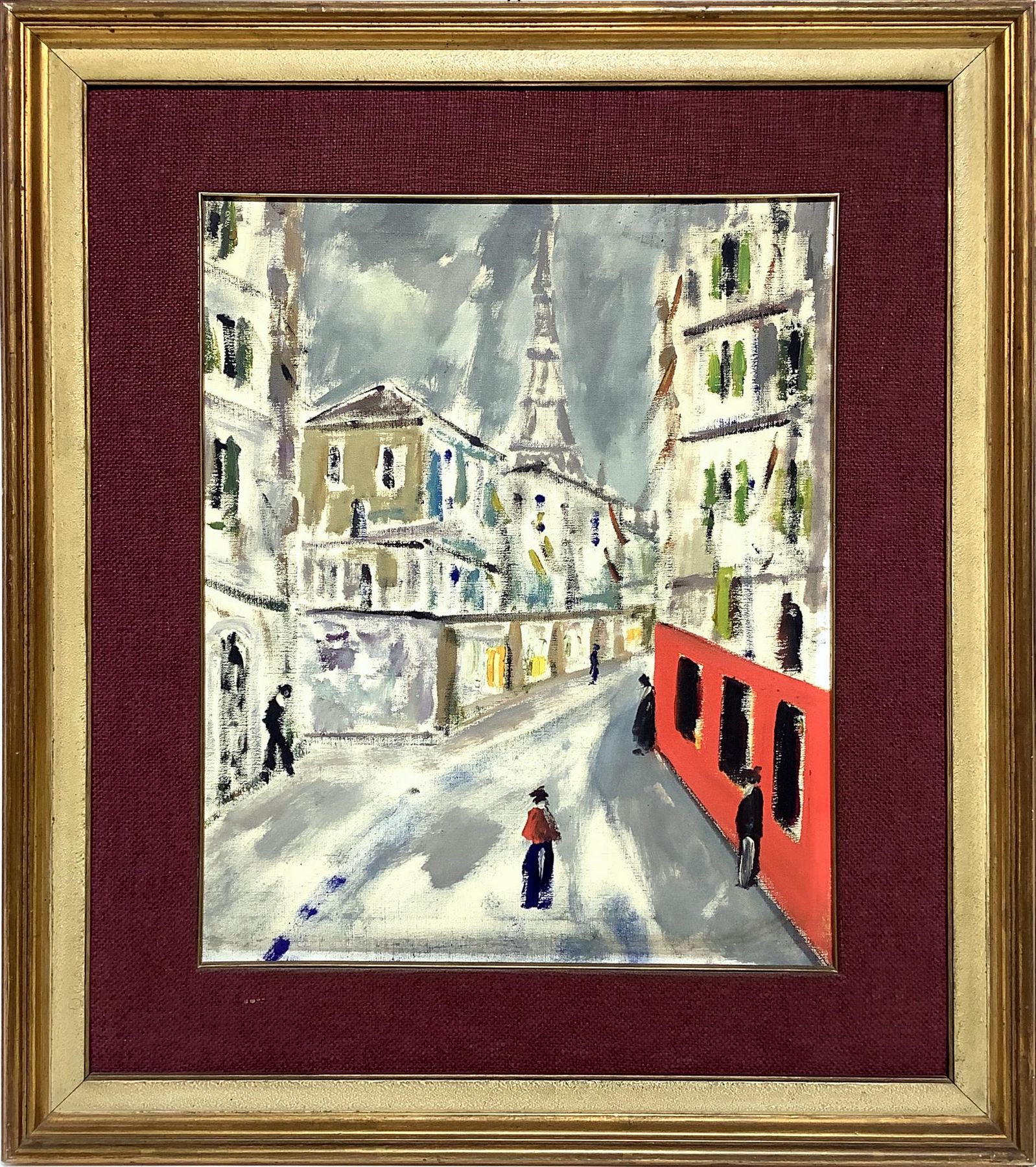 Olio su tela raffigurante canale strada Parigi. Cm 50x40. In cornice 70x60