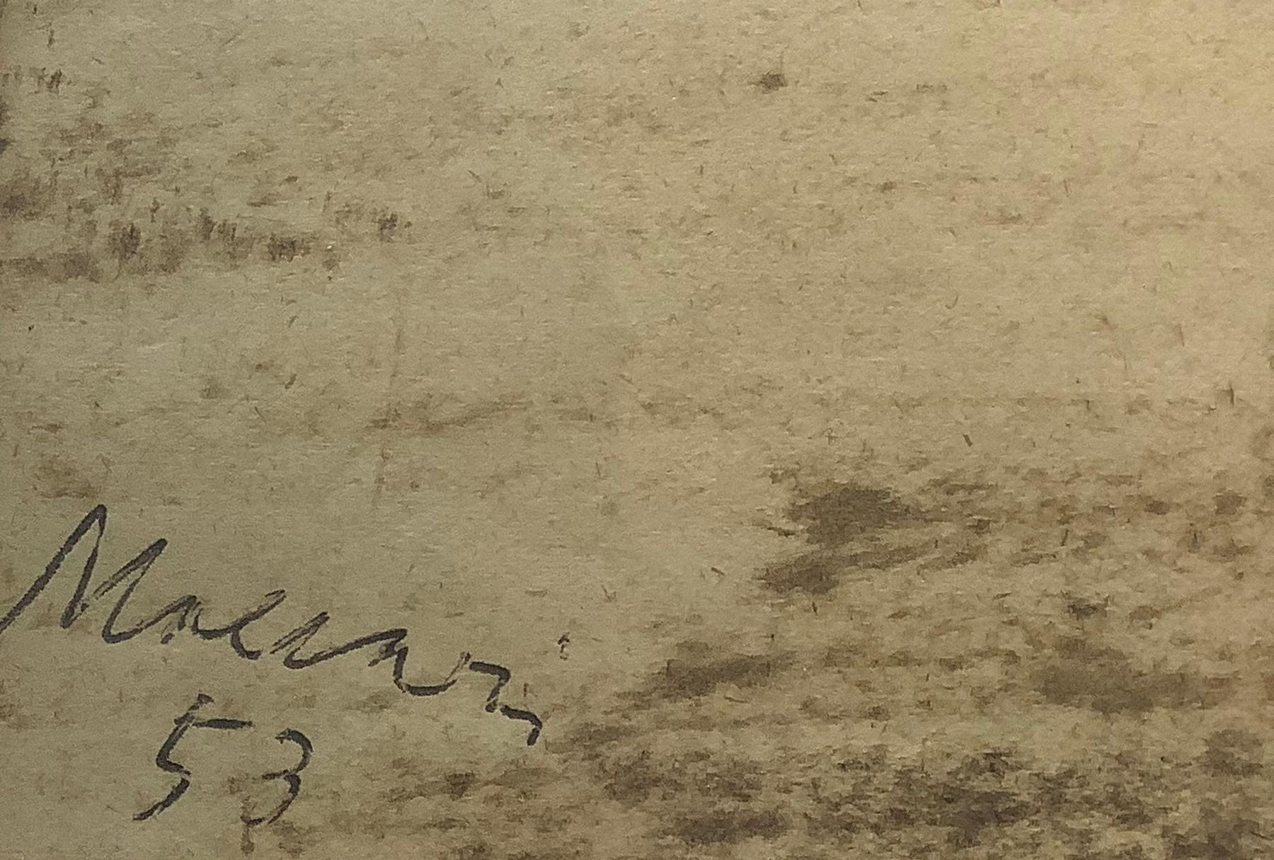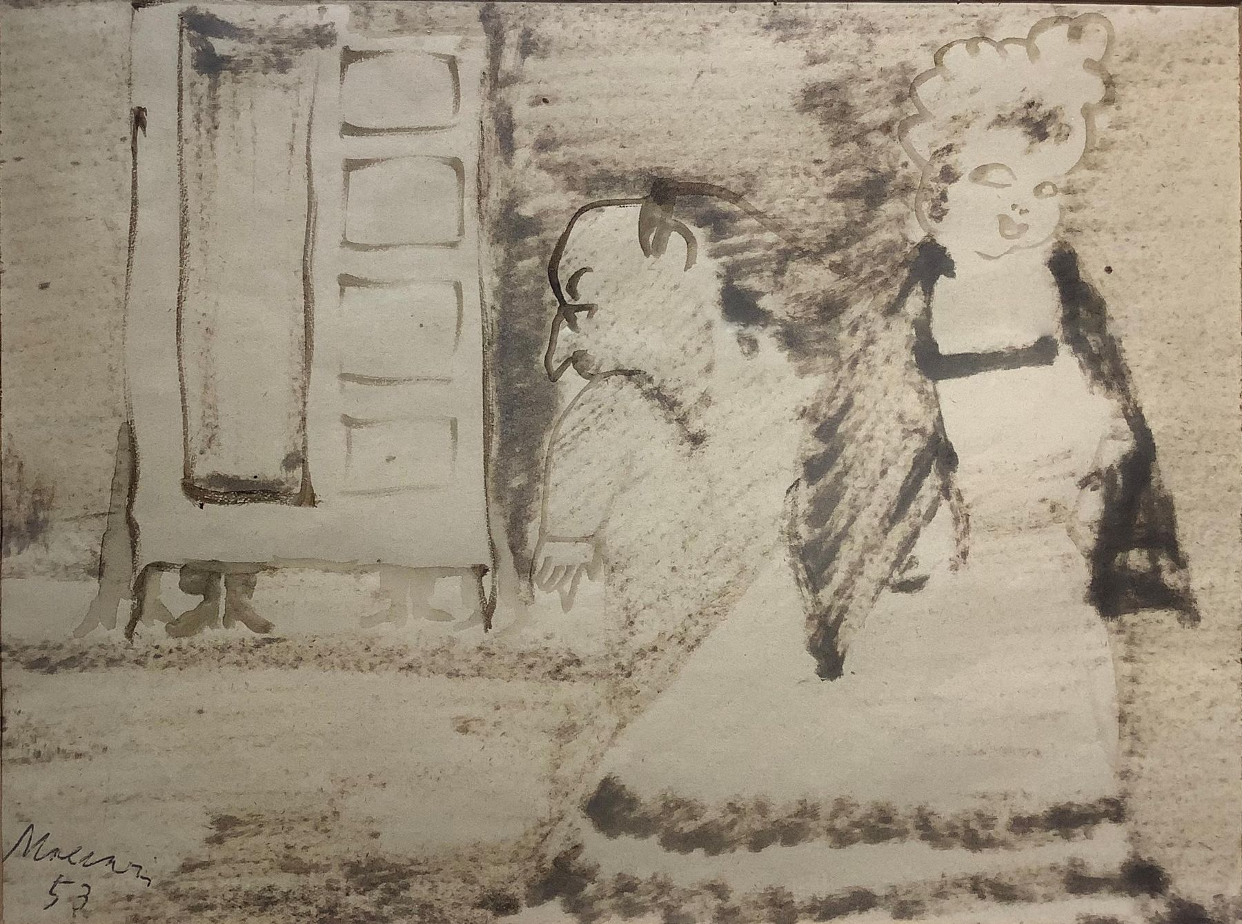 Disegno a inchiostro su carta raffigurante uomo e donna, Mino Maccari (Siena,1898 – Roma,1989), Firmato Maccari 53. Cm 20x26.