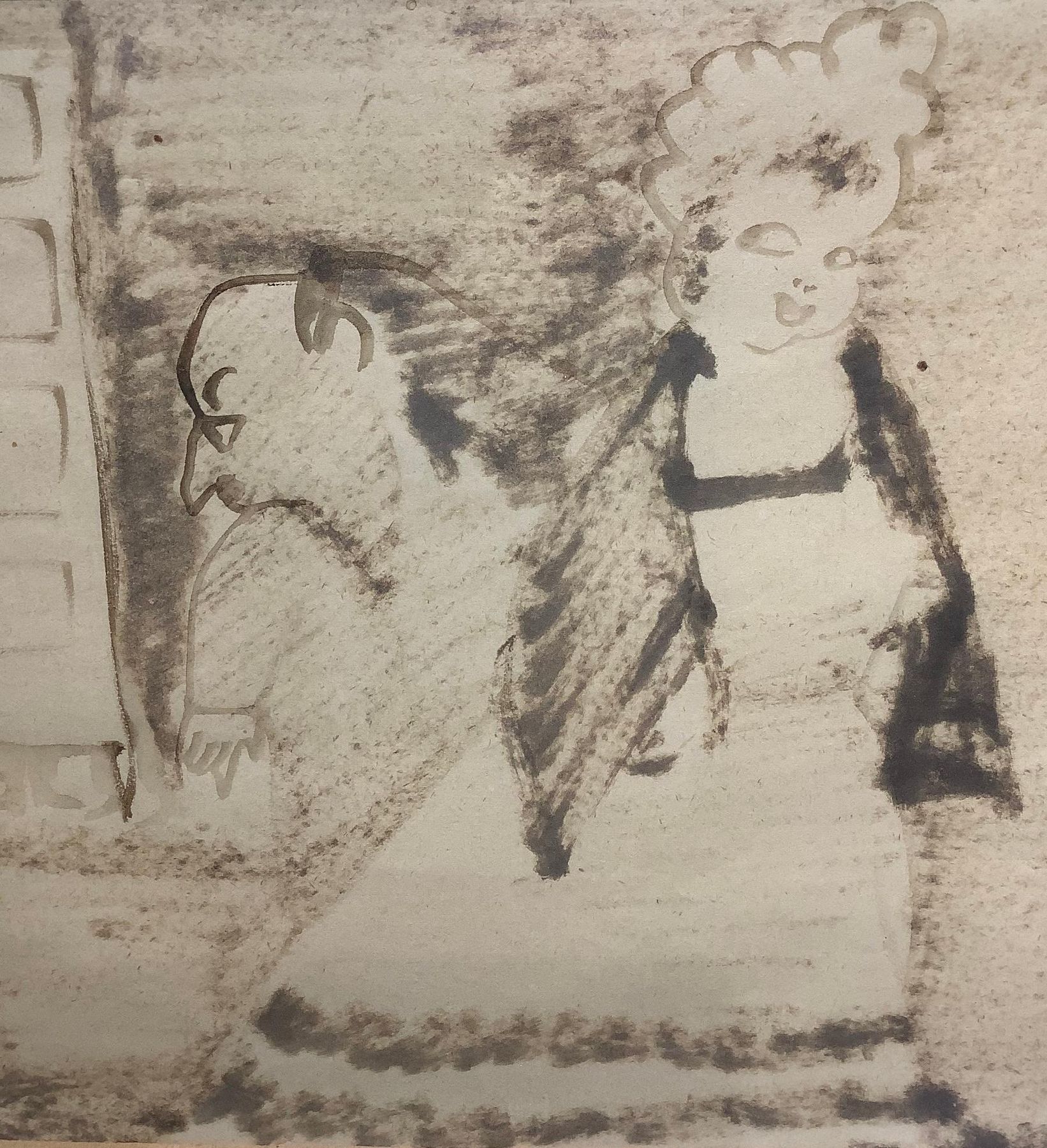 Disegno a inchiostro su carta raffigurante uomo e donna, Mino Maccari...