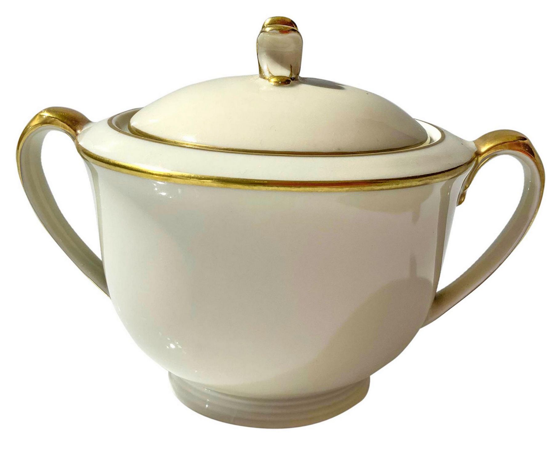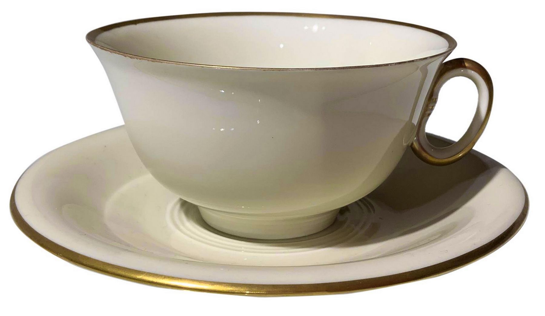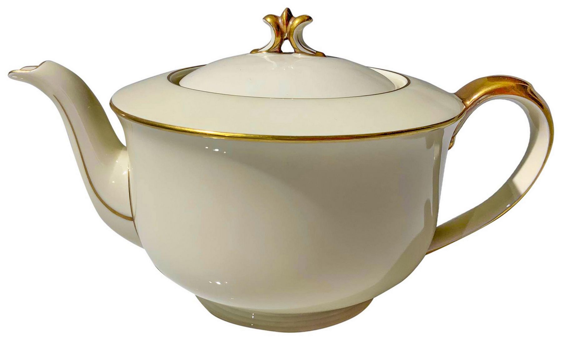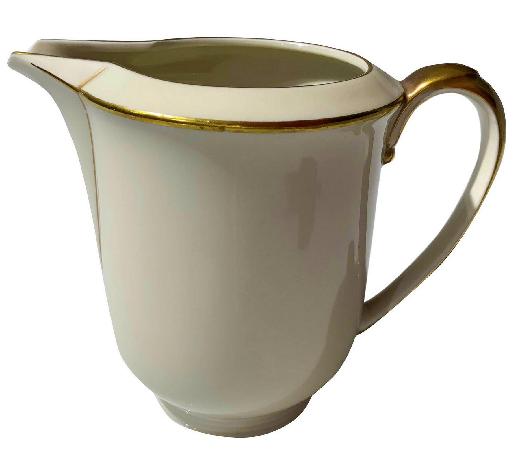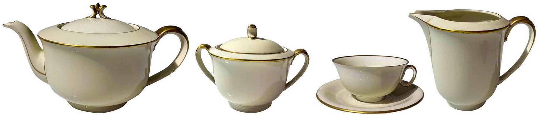 Servizio da Te in porcellana, Hutschenreuther Hohenberg "Margarete", Bavaria, color avorio, XX secolo. Composto da n. 12 tazze, zuccheriera, lattiera, teiera. Minima sbeccatura su una tazza, fileur nella zuccheriera.