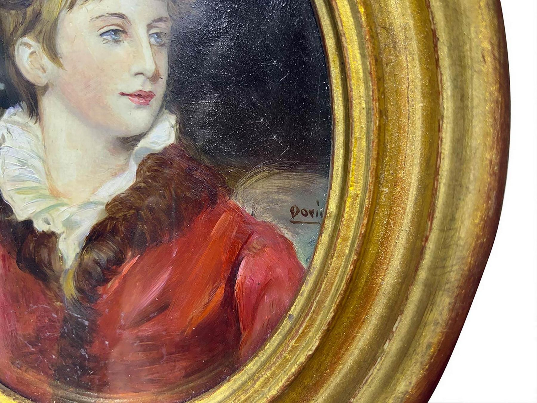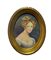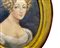 Gruppo di cinque miniature ovali. Personaggi cm 7, paesaggio cm 7, natura morta di fiori cm 9.