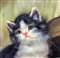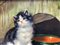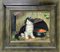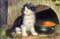 Olio su tela raffigurante gatto con ciotola. Firmato Campione 2010. Cm 13x17,5 in cornice cm 22x27.