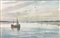 Acquarello raffigurante marina con barche, XX secolo. Cm 10x15, in cornice cm...