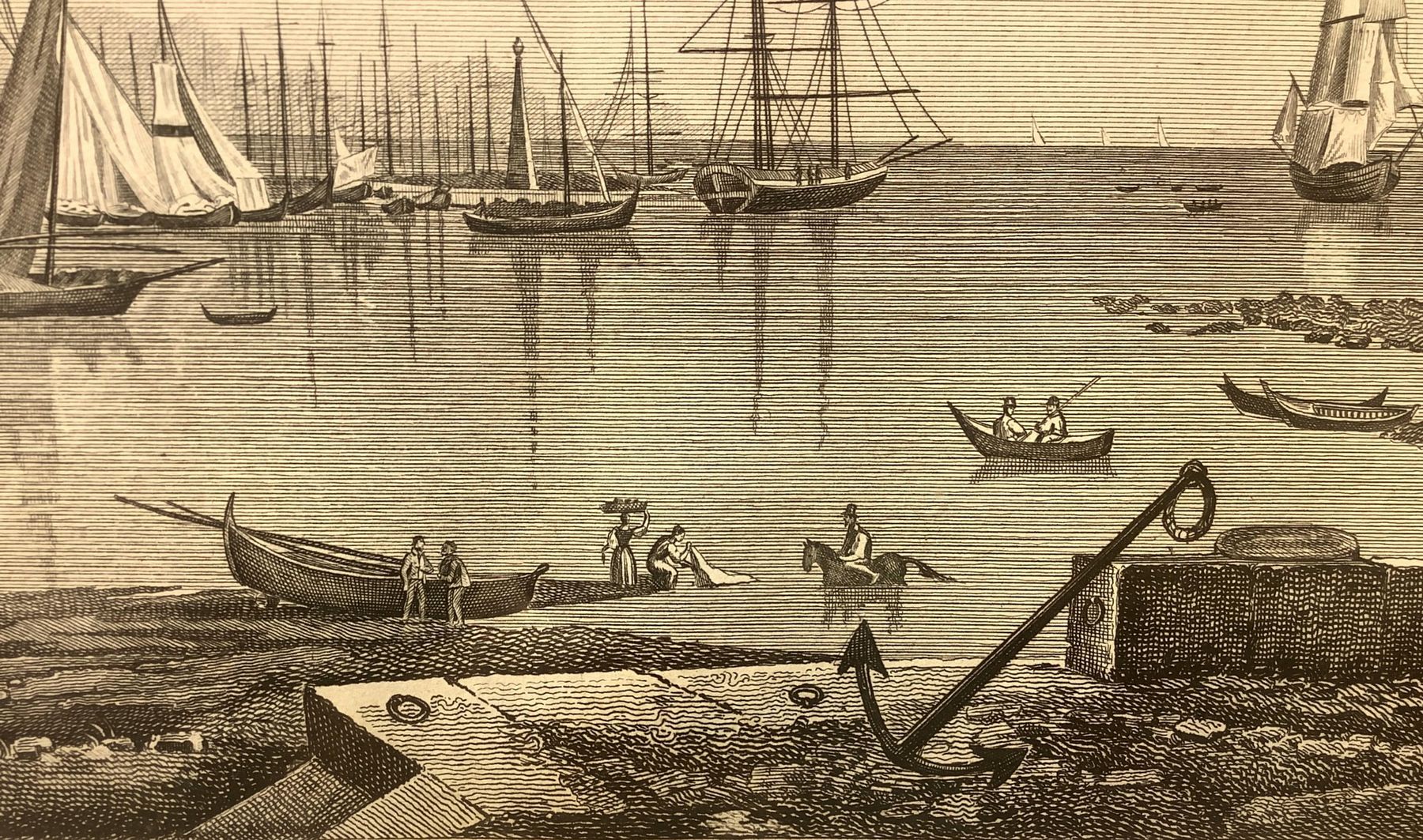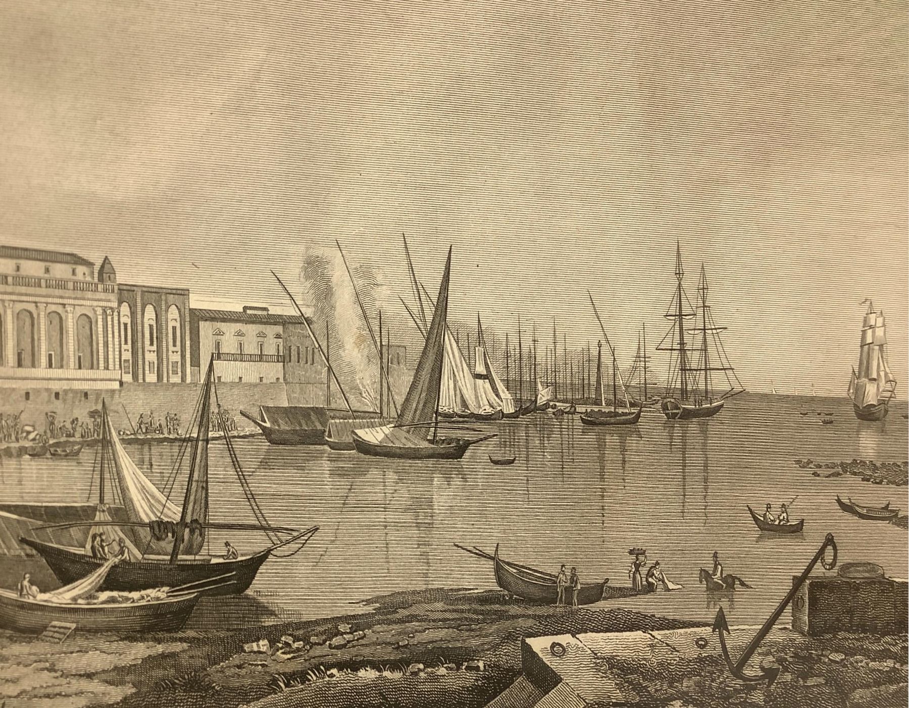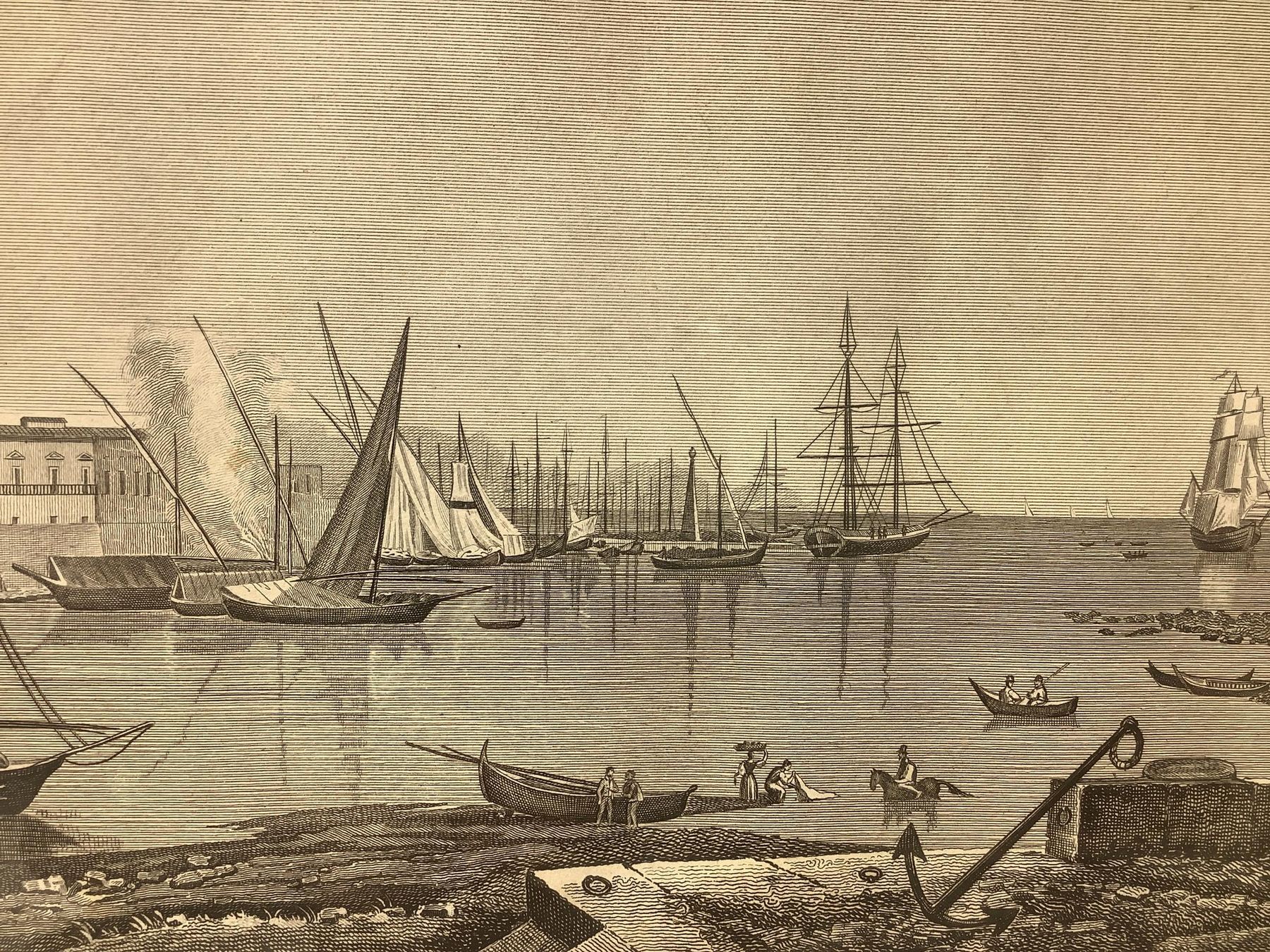 Incisione raffigurante vista del porto di Catania, metà XIX secolo, cm 22x31...