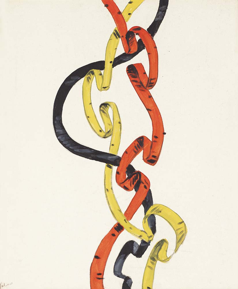 ALBINO GALVANO Torino 16/12/1907 - Torino 1991 Nastri, 1969 olio su tela cm. 60x50, firma in basso a sinistra, anno al retro, pubblicato sul catalogo della mostra antologica tenutasi a Palazzo Chiablese (TO) nel 1976/80 al numero 128.