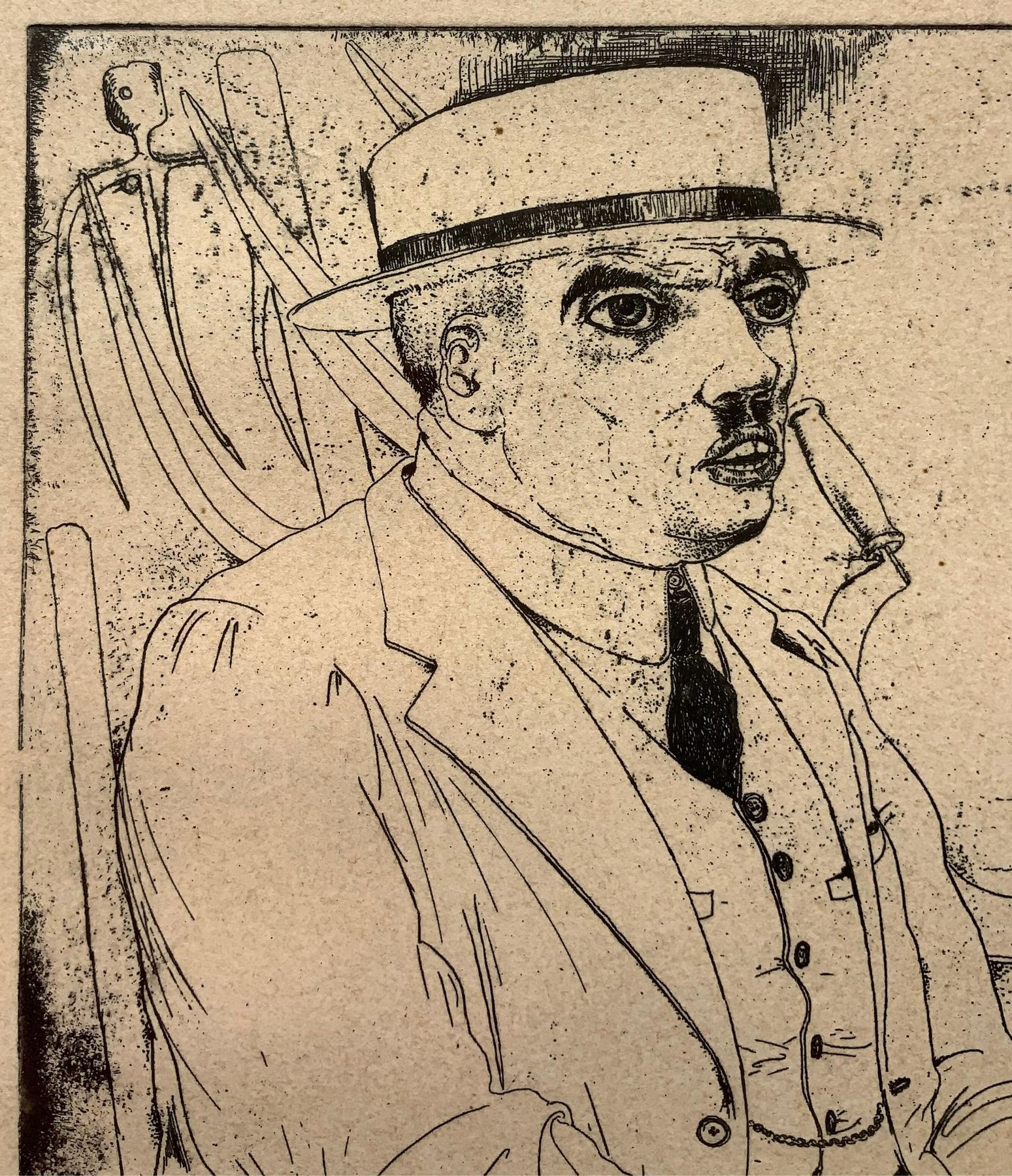 Incisione raffigurante figura maschile, Bruno Caruso (Palermo, 1927 – Roma, 2018). Cm 70x50. Firmata in basso a destra