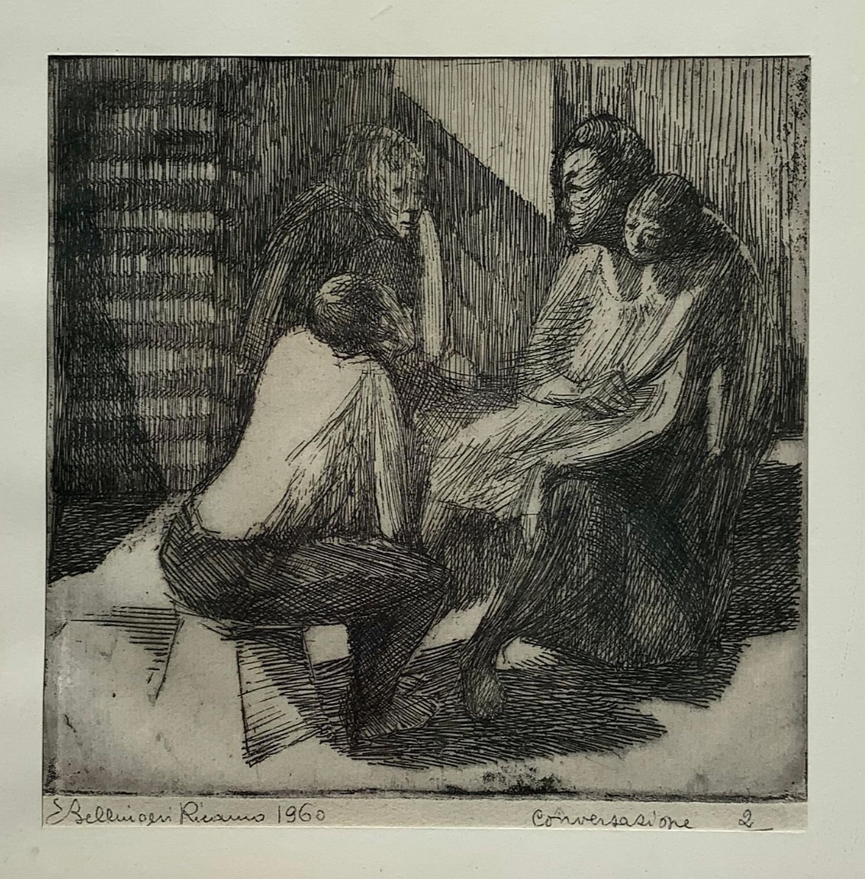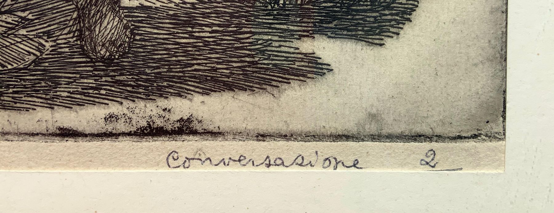Incisione raffigurante “Conversazione” 2/50. Firmata E. Bellingeri Ricamo...