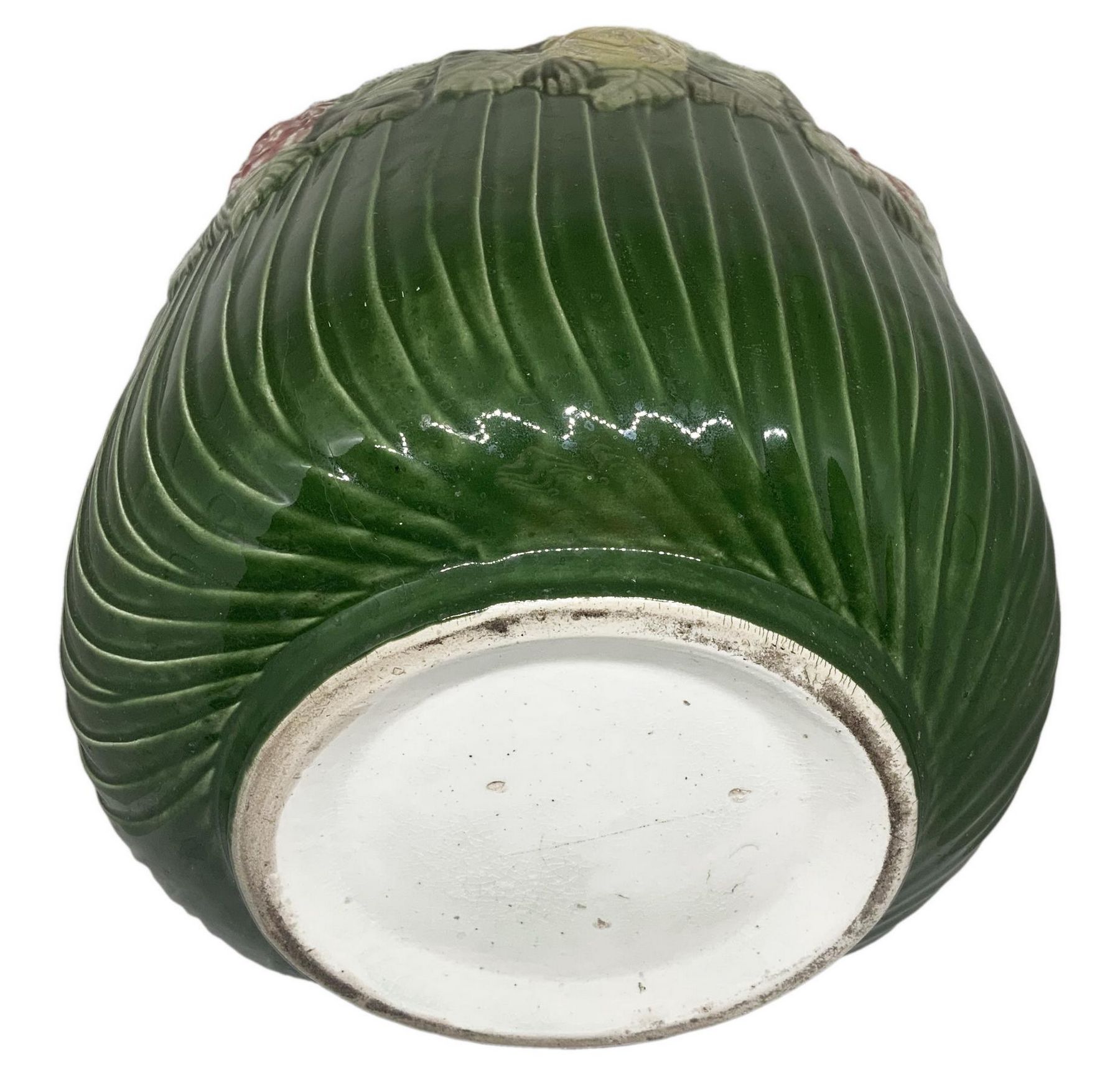 Coppia di cachepot in porcellana, lavorazione barbotine in colore verde,...