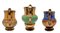 Gruppo di tre boccali in maiolica policroma. Inizi XX secolo, Malta. H cm...
