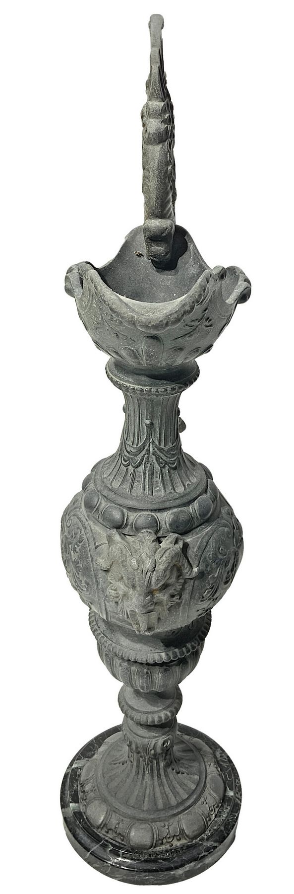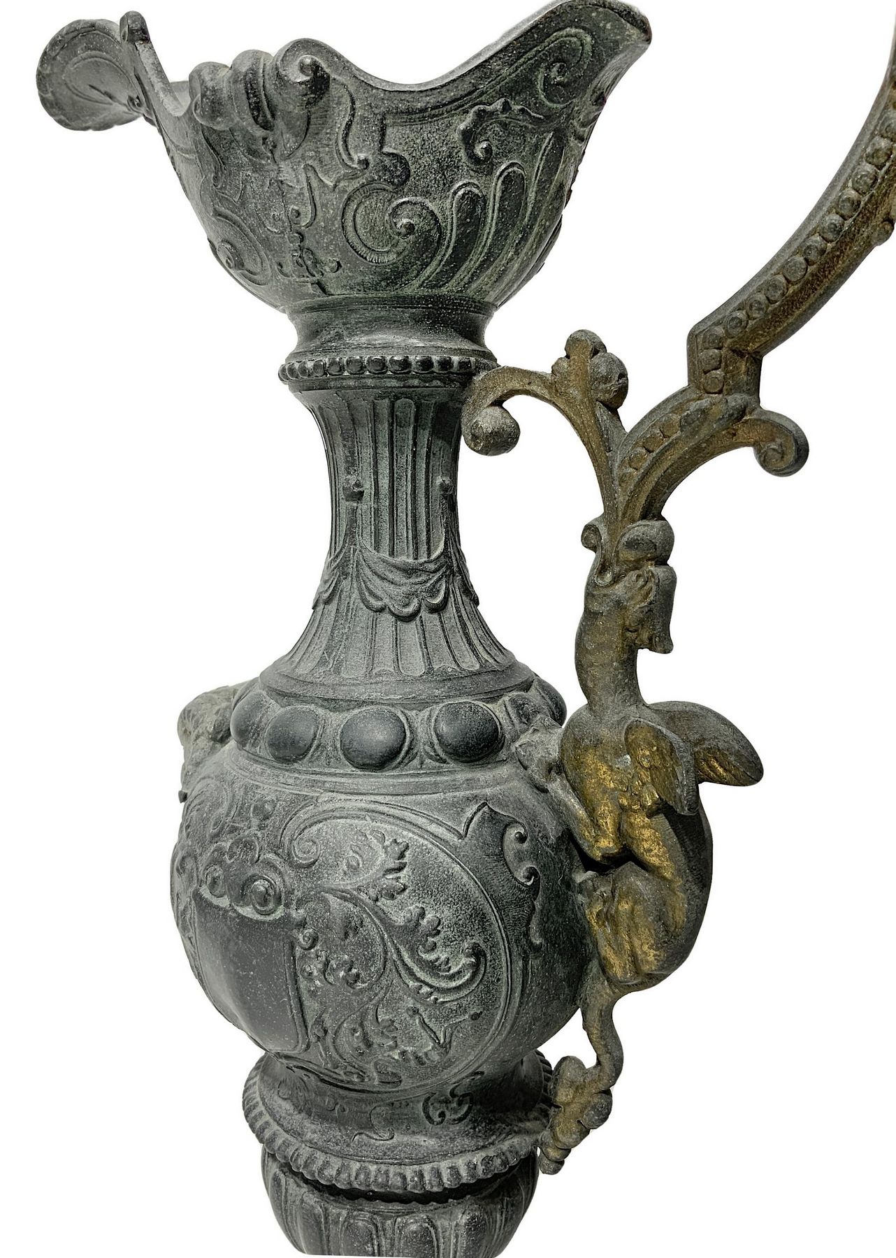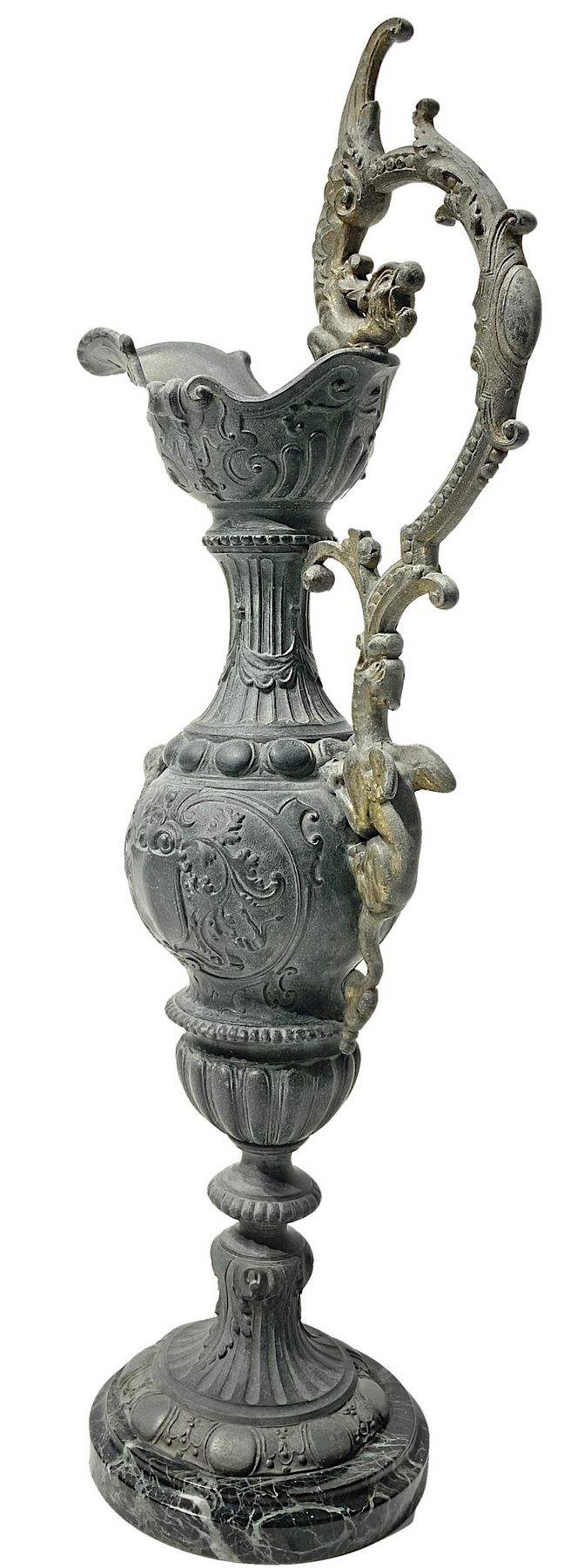 Coppia di anfore in bronzo con base in marmo, fine XIX secolo. H cm 50,5....