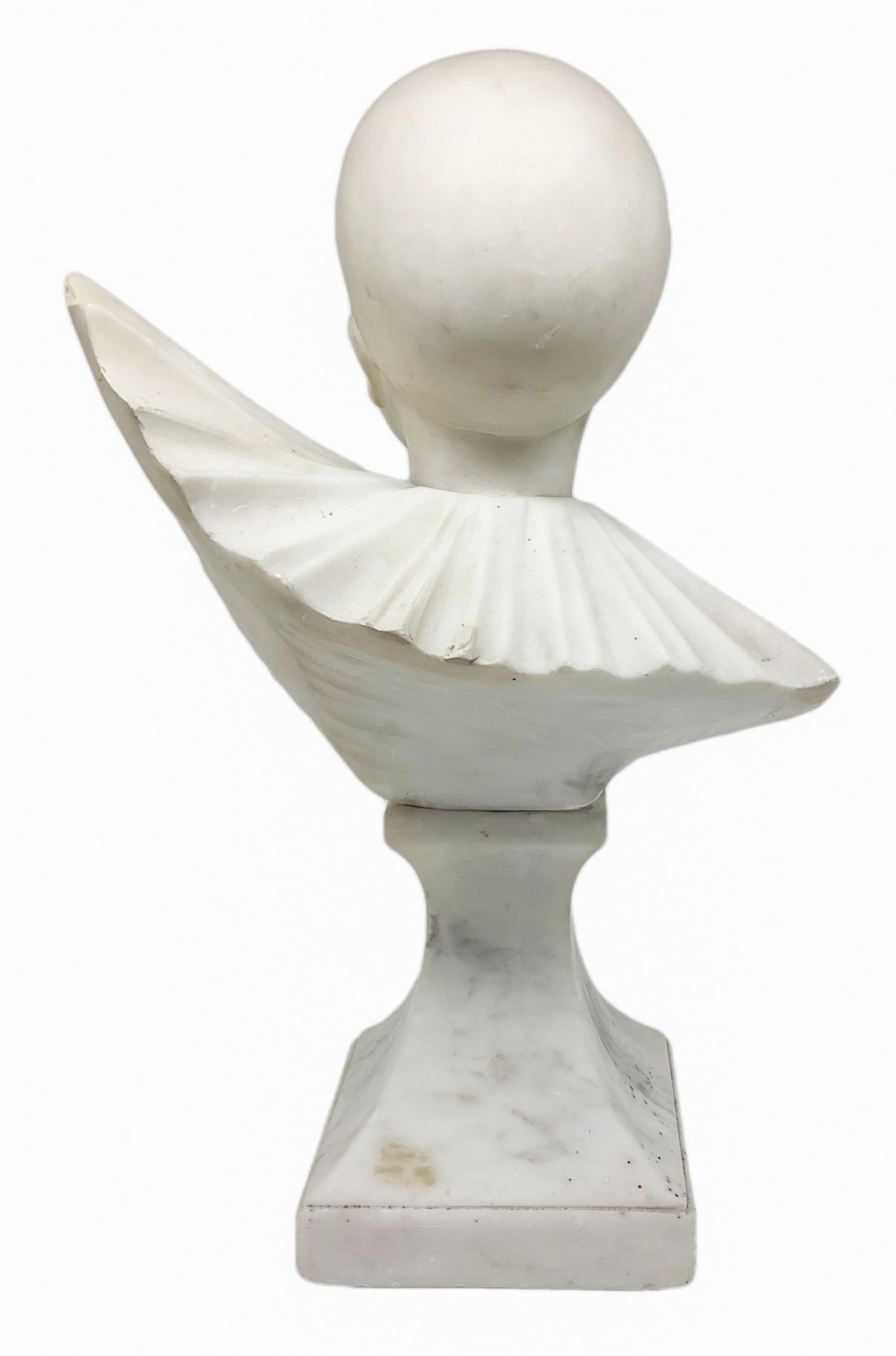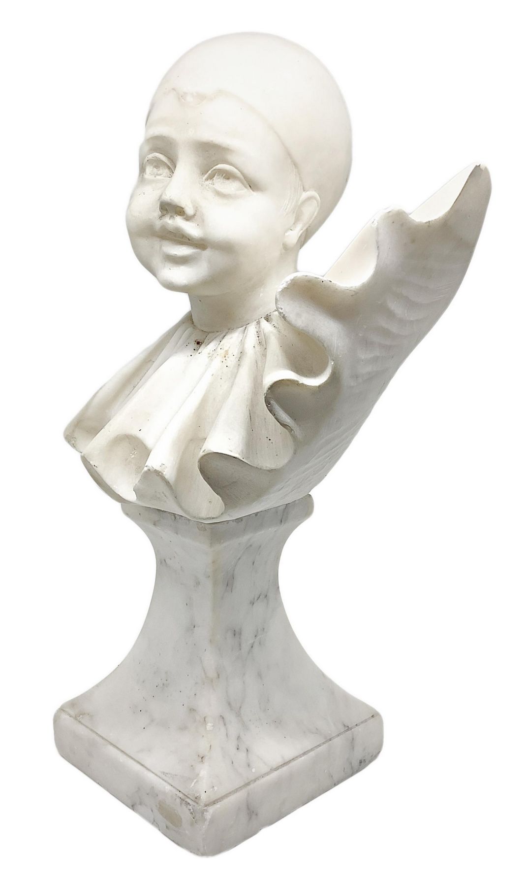 Scultura in marmo raffigurante Pierrot, XIX /XX secolo. Con base in marmo. H...
