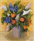 STEFANO PULEO Acitrezza (CT) 29/05/1950  Fiori, 2000 olio su tela cm. 60x50, firma in basso a destra, titolo, firma e anno al retro, dichiarazione d'autenticità dell'artista su foto.