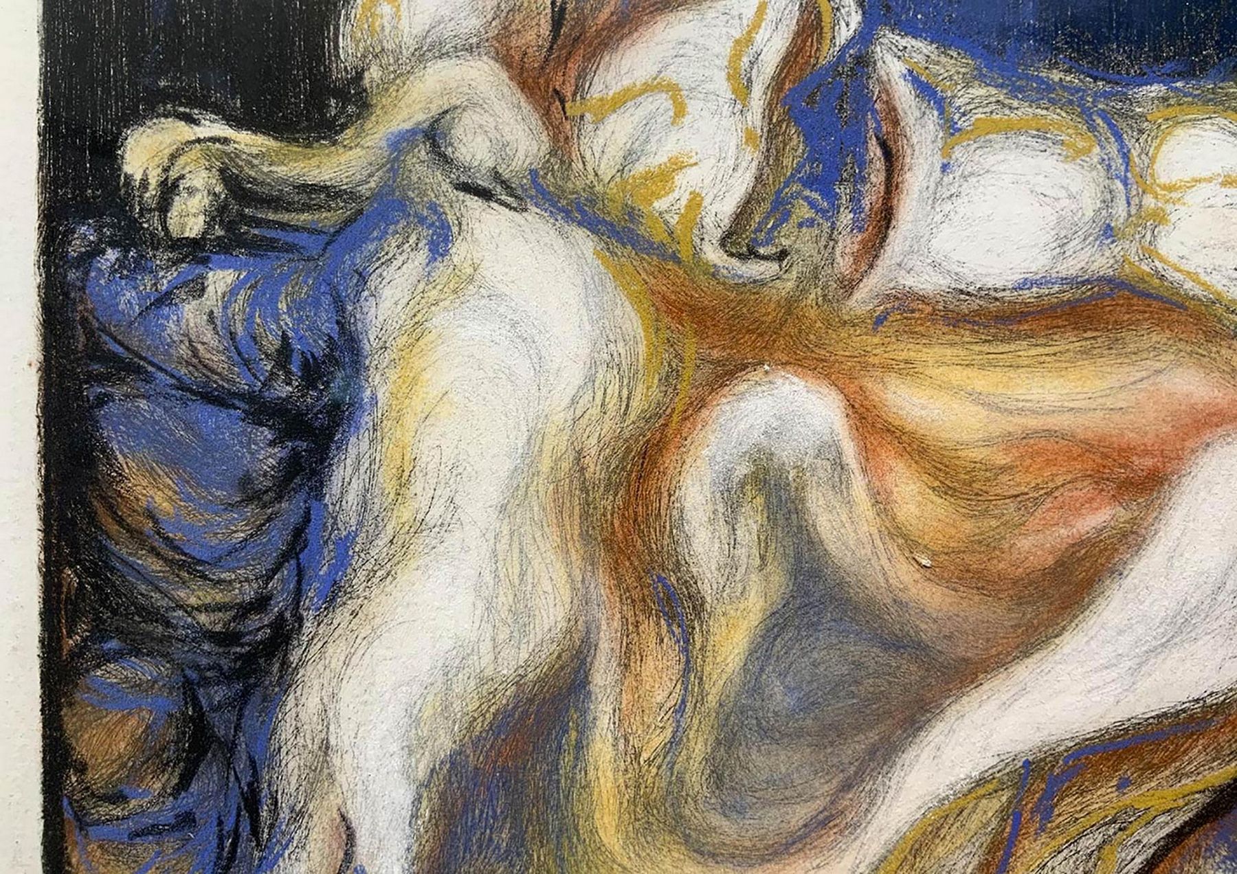 Dipinto raffigurante larva di Milena Nicosia (1974, Vittoria). Cm 24,5x21, tecnica mista acquaforte e pastello. Firmato e datato 2001 in basso.